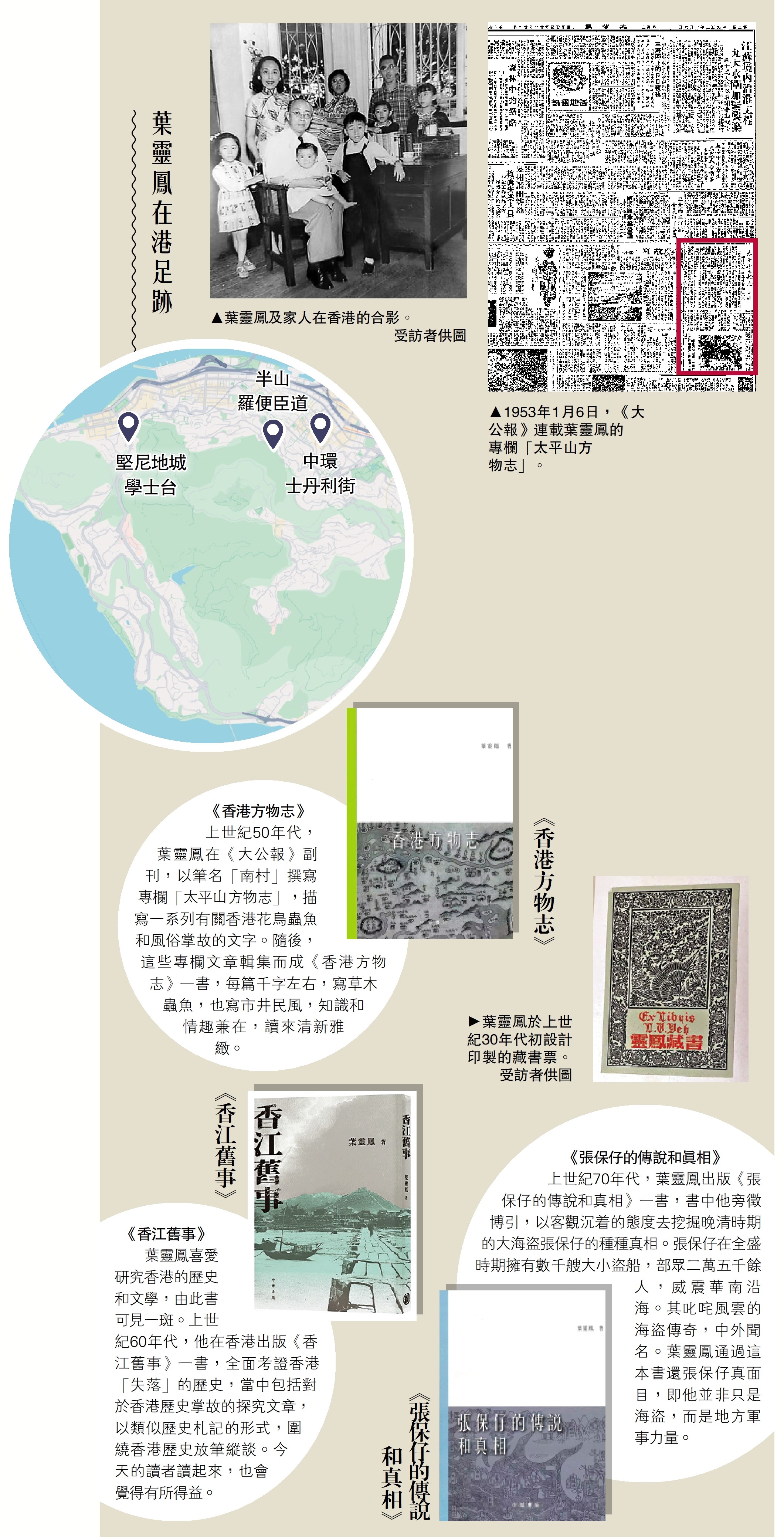 上世紀50年代,葉靈鳳在《大公報》副刊,以筆名「南村」撰寫專欄「太平山方物志」,描寫一系列有關香港花鳥蟲魚和風俗掌故的文字。隨後,這些專欄文章輯集而成《香港方物志》一書,每篇千字左右,寫草木蟲魚,也寫市井民風,知識和情趣兼在,讀來清新雅緻。