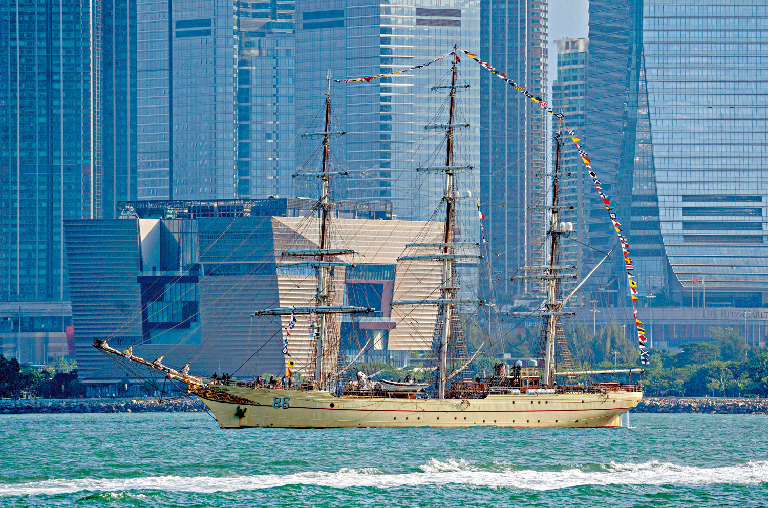 解放軍海軍第一艘風帆訓練艦「破浪艦」首度訪港,其間將組織艦艇開放、甲板招待會等活動。有獲邀昨日上船參觀的市民表示,了解帆船運作後覺得十分新奇,感到「好滿足」。\大公報記者 鄭文迪