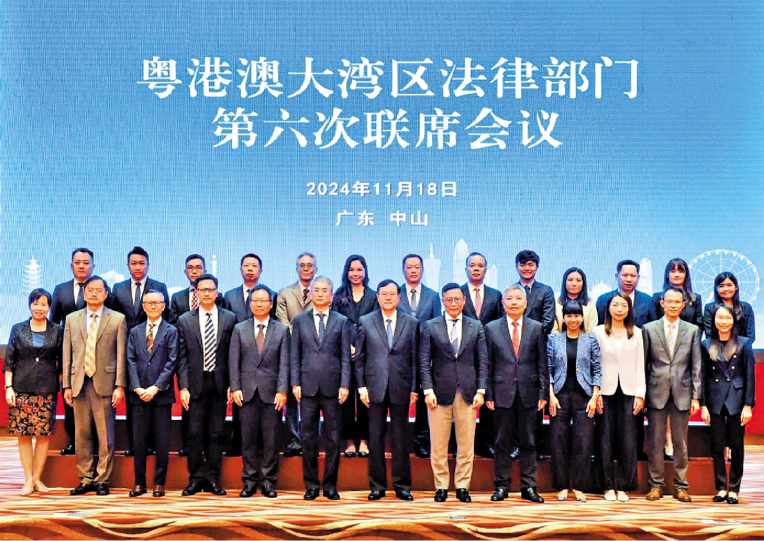 粵港澳大灣區法律部門第六次聯席會議昨日在中山舉行,與會的香港、廣東及澳門法律部門代表積極推進三地爭議解決服務「軟聯通」。