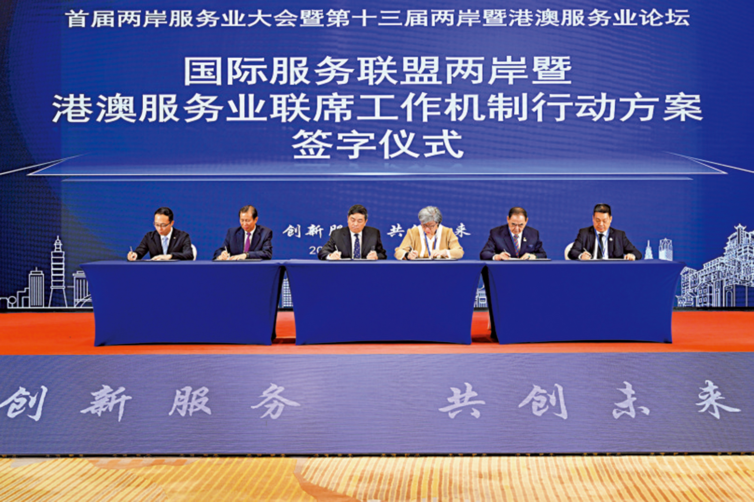 中國商業聯合會與台灣服務業聯盟協會、台灣商業總會、台灣商業聯合總會共同發布了兩岸服務業交流合作融合發展共同倡議,旨在進一步加強兩岸間服務業合作向更高層次、更廣領域發展。倡議包括推動兩岸傳統及創新型服務業深度融合,加強兩岸青年往來與民心交往,促進兩岸服務業綠色、低碳、可持續發展。