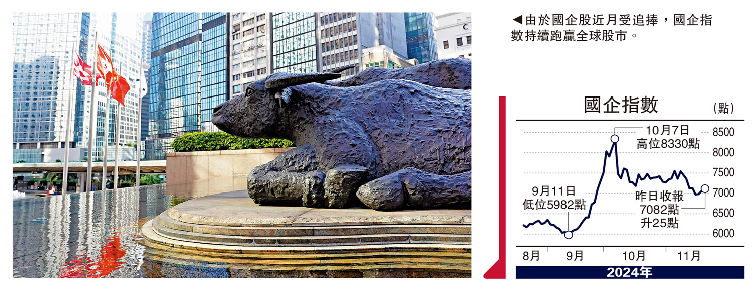 北水南下熱捧國企股,今年來國企指數累升逾兩成,高於MSCI環球股市指數一成半的升幅,預期國企股強勢可望持續。