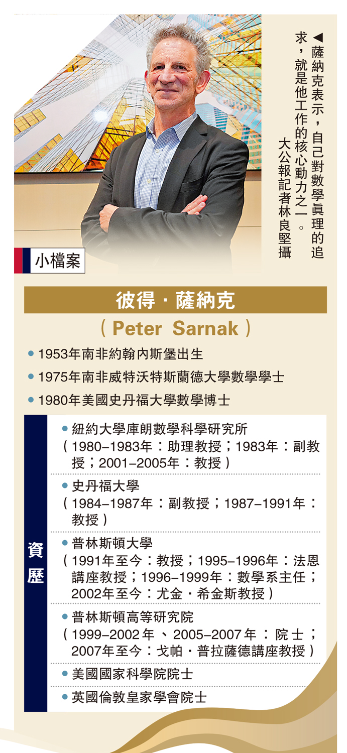 彼得·薩納克指出,數論被稱為「數學女王」,雖然傳統上被認為沒有任何應用用途,但如今它在密碼學中發揮重要作用。他鼓勵年輕人深入學習數學,通過學習原始論文來探索這一領域的複雜性和美麗,同時亦要學會面對失敗。\大公報記者 唐雪婷