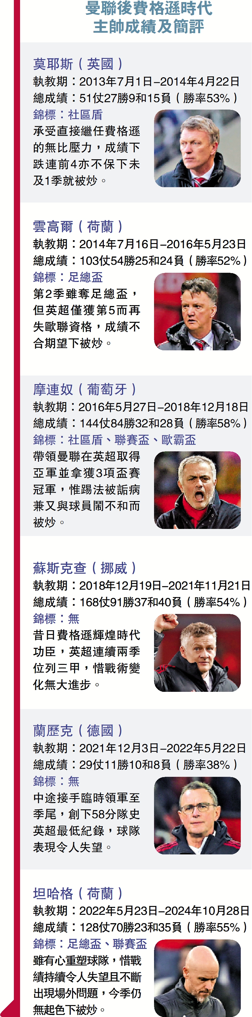 承受直接繼任費格遜的無比壓力,成績下跌連前4亦不保下未及1季就被炒。