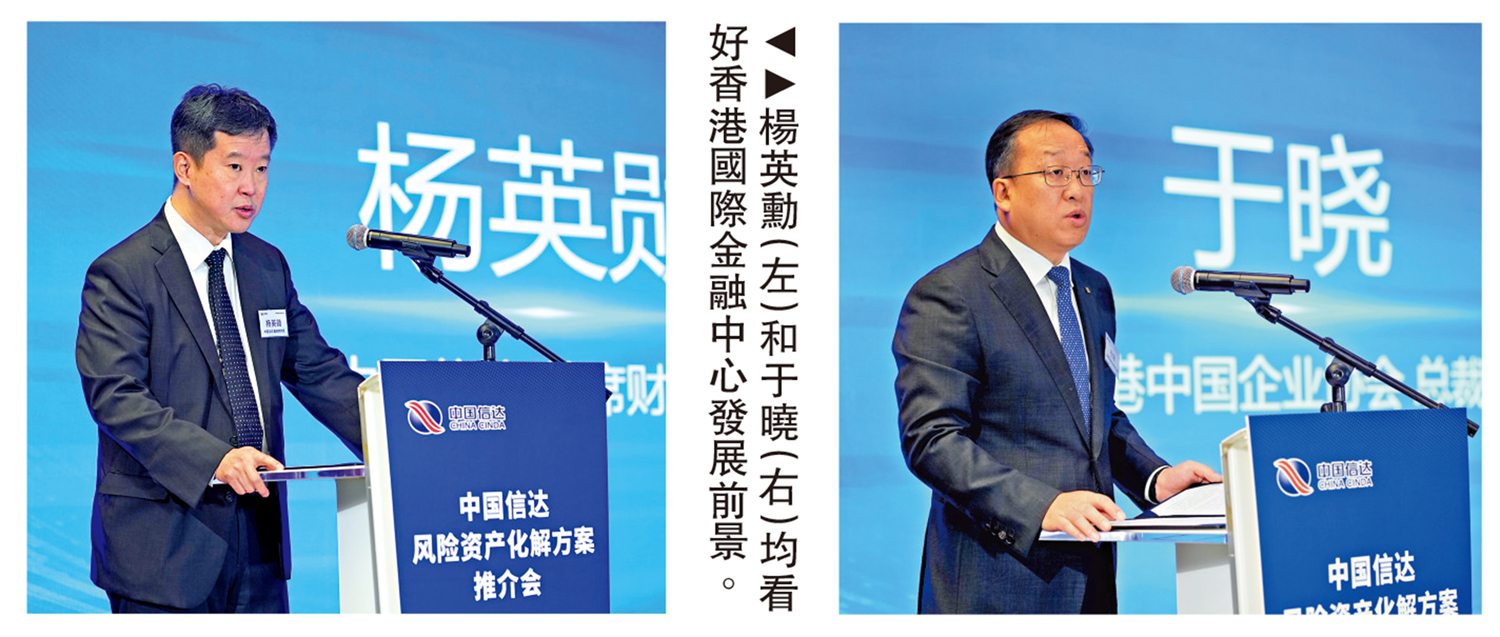 中國信達首席財務官楊英勳在推介會上引述,國務院副總理何立峰在出席國際金融領袖投資峰會時指出,把香港國際金融中心建設好、鞏固好、發展好,既是香港所需,也是國家所重,將一如既往、全力以赴為香港深化金融改革發展、維護金融穩定安全提供充分支持和保障。