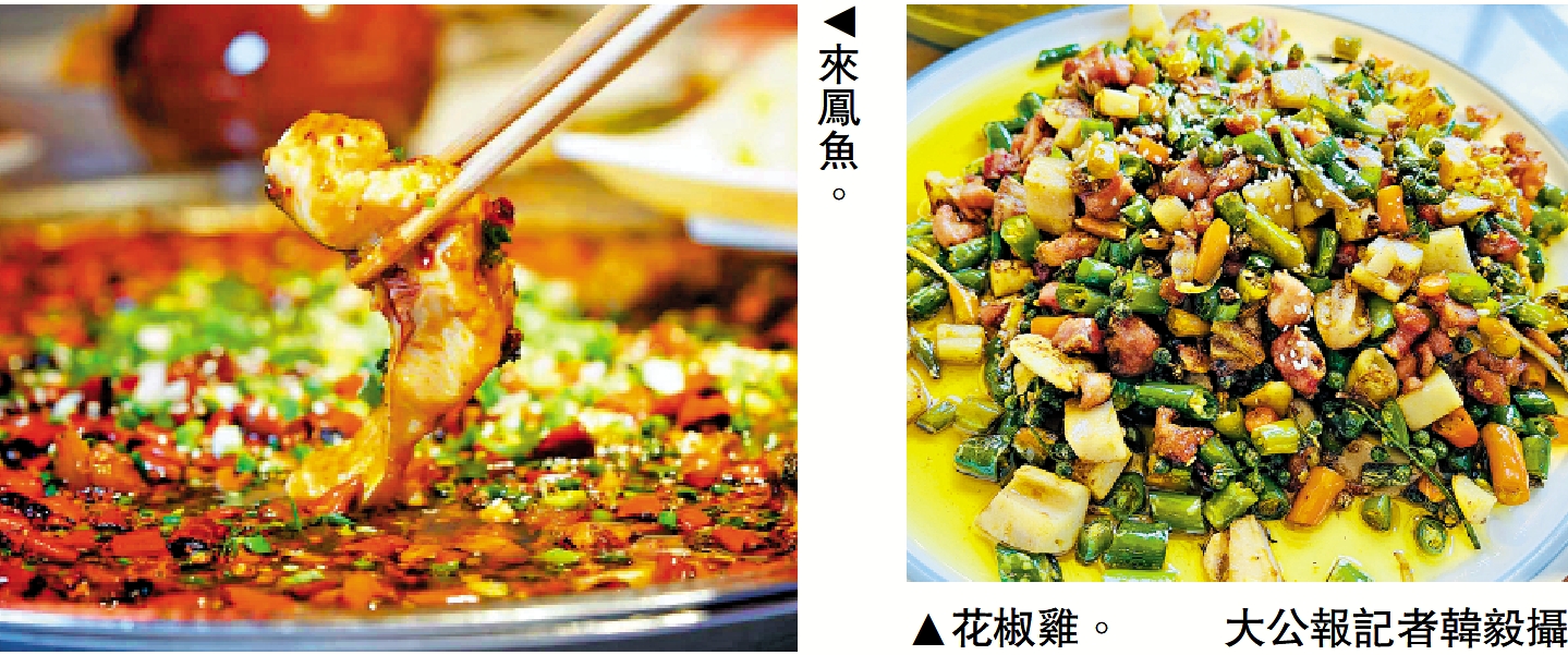 說起重慶美食,除了火鍋和烤魚,來鳳魚、花椒雞也不容錯過。特色名菜來鳳魚,作為重慶「江湖菜」流行之鼻祖,主要選取鰱魚加以佐料炒製過後,紅油噴香,以麻、辣、鮮、香、嫩為特色,口感回味悠長。花椒雞選用的公雞,是農戶散養的「跑山雞」,肉質更為鮮美,融合青花椒獨有的椒麻清香,花椒和尖椒的麻辣與鮮嫩雞肉巧妙結合,口感鮮香,麻爽帶勁,品嘗後回味無窮。