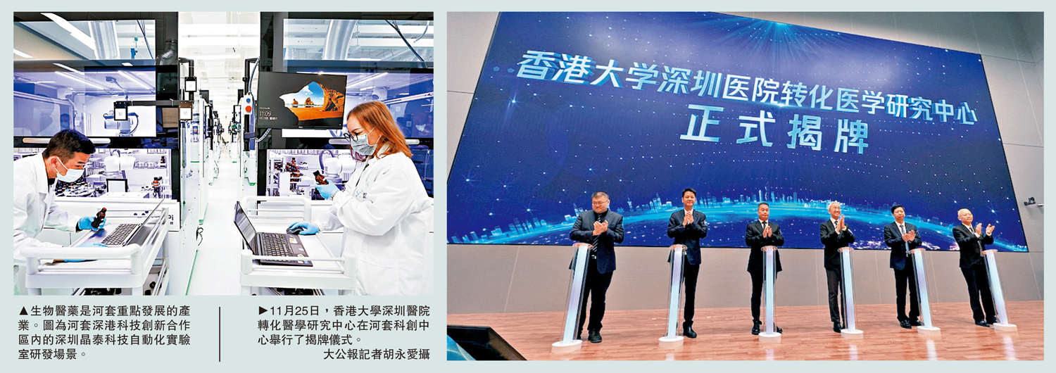 張文智認為,位於河套深圳園區的港大深圳醫院轉化醫學研究中心可以成為深港合作的橋樑,港大深圳醫院轉化醫學研究中心將成為香港大學基礎研究成果轉化到臨床應用,乃至藥械產品生產上市的重要創新管道。「港大深圳醫院既有港大基因、國際合作案例,又有深圳本土積累,所以在醫療領域的深港合作上,我們是最久也最具豐富經驗的。未來,我們將從上游香港或海外高校的基礎研究出發,在河套的研究中心進行轉化研究,再引入到港大深圳醫院進行臨床研究與試驗,最後與內地或國際的生物科技企業進行對接,進行藥械生產製造。」