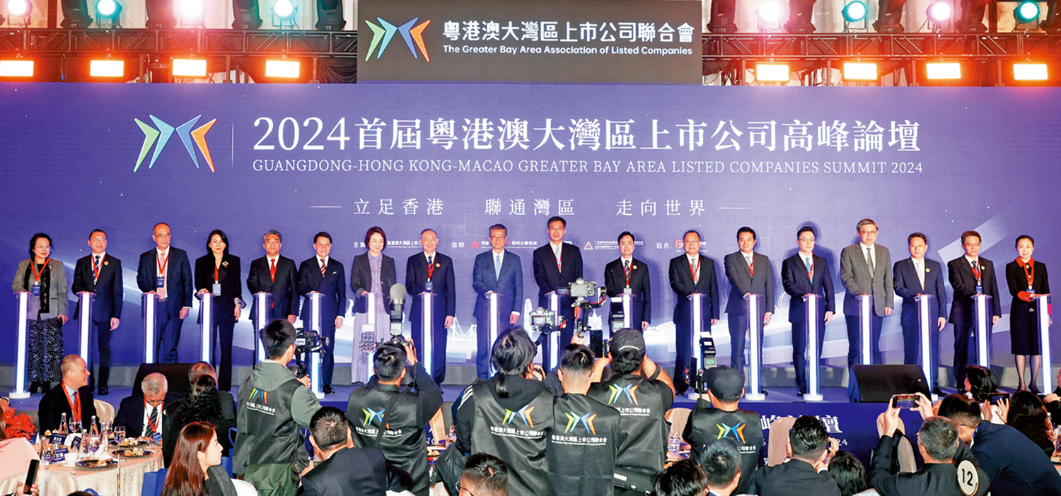 2024首屆粵港澳大灣區上市公司高峰論壇昨在港舉辦,論壇以「立足香港 聯通灣區 走向世界」為主題,現場還舉行了粵港澳大灣區上市公司聯合會ESG、產業併購、IPO「三駕馬車」及「100+粵港澳大灣區上市公司借港出海聯盟」啟動儀式。香港特區政府財政司司長陳茂波,中央政府駐港聯絡辦副主任祁斌,粵港澳大灣區上市公司聯合會創會會長許國偉等出席活動並致辭,鼓勵內地企業「用好中央惠港政策,大膽試,大膽闖」,推動香港鞏固傳統優勢的同時探索新動能,共同助力大灣區發展一體化。\大公文匯全媒體記者 蔡競文(文)、郭木又(圖)