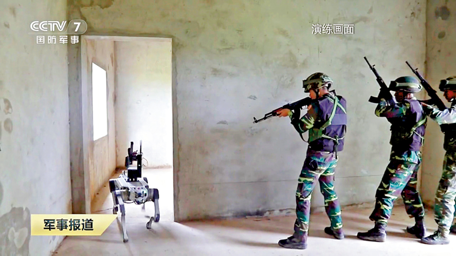 伴隨特戰隊員行進的還有智能化「機器狗」。可以通過遠程遙控,完成爬樓梯、穿越狹窄通道、茂密叢林等複雜動作,進行偵察,或加載自動步槍、炸藥包,在危險地帶實施火力打擊、爆破共建任務,是反恐作戰的「奇兵」。