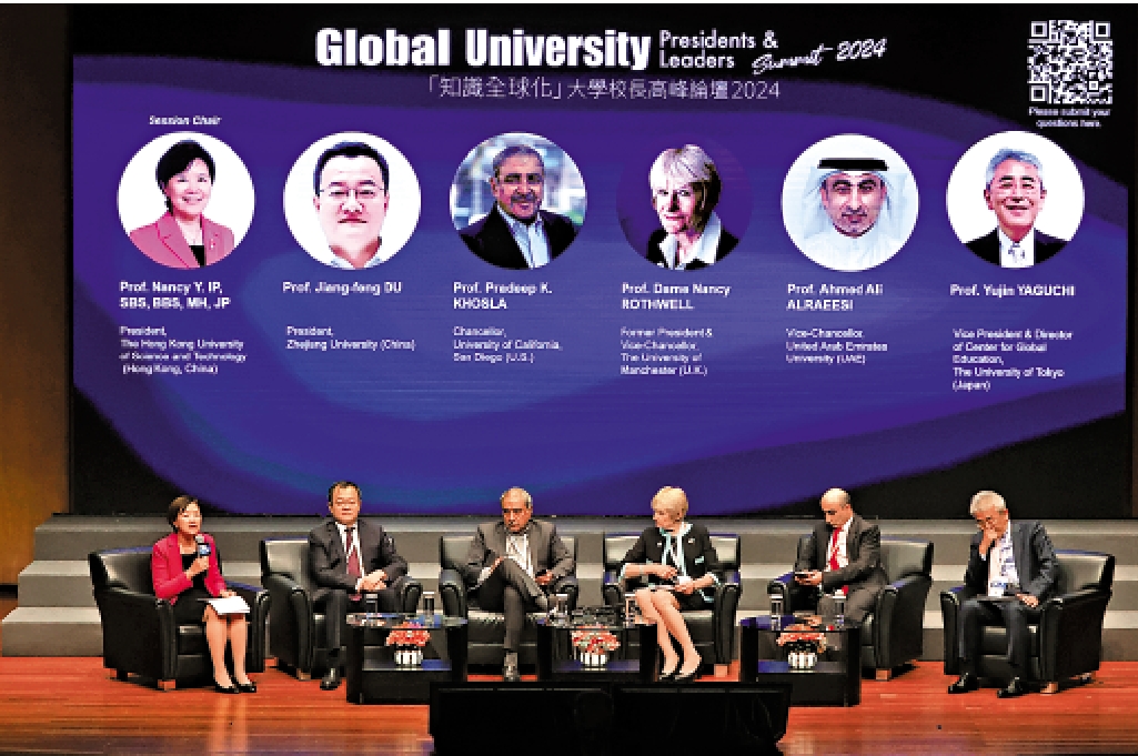 持續兩天的「大學校長高峰論壇2024」,分別由香港本地九間大學校長主持,共同圍繞九個議題展開探討,包括人工智能時代下知識全球化、道德倫理、法律、人口、教育、未來、數據、生物醫療、綠色經濟等重大議題,以及如何在迅速變遷的世界秩序中為年輕一代創造價值。昨日緊接開幕禮進行的首場會議,主題為「知識全球化對人類的重要性」,由香港科技大學校長葉玉如主持,與5位來自全球各地的高教領袖,探討透過全球信息交流和共享,如何促進知識跨國傳播、建立合作,為人類帶來更璀璨的未來。