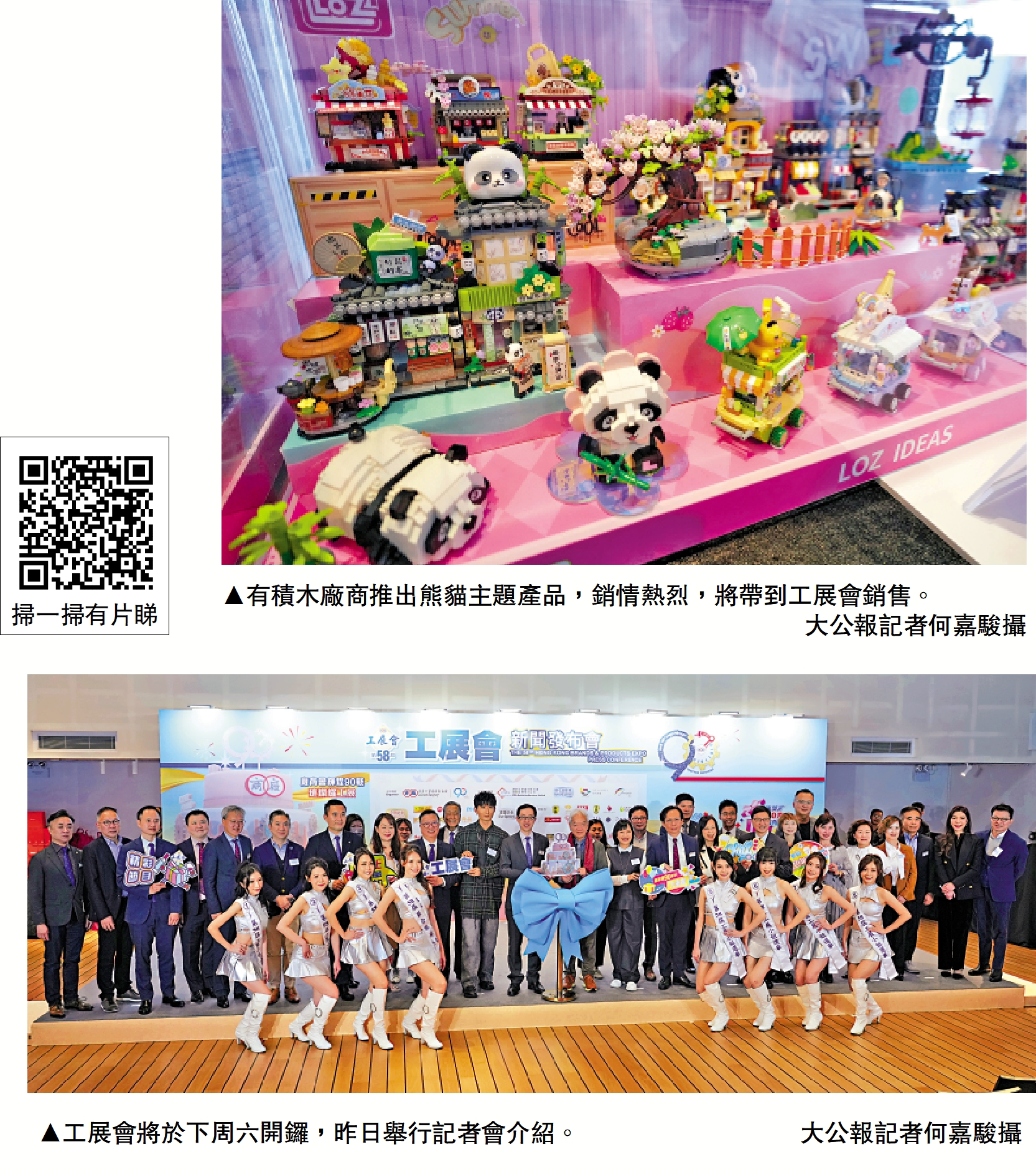 有參展商因應「一簽多行」推出產品,預期帶動作用良好。有海味舖推出海味福袋,並加入不定時優惠;有積木廠商以本港景點為靈感設計積木,並就熊貓熱潮推出主題產品。\大公報記者 劉碩源(文) 何嘉駿、鄧浩朗(視頻)