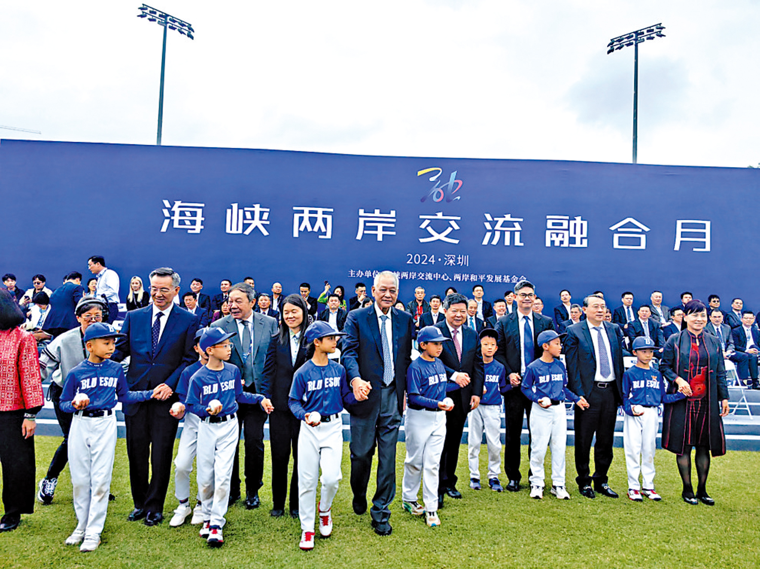 【大公報訊】記者郭若溪深圳報道:12月5日,由國務院台灣事務辦公室指導,國務院台辦海峽兩岸交流中心、台灣兩岸和平發展基金會共同主辦,以「青春力量 幸福家園」為主題的第二屆海峽兩岸交流融合月暨第五屆海峽兩岸學生棒球聯賽總決賽開幕式5日在深圳舉行。兩岸各界人士和青少年3000餘人相聚鵬城,敘親情、話融合、謀發展。