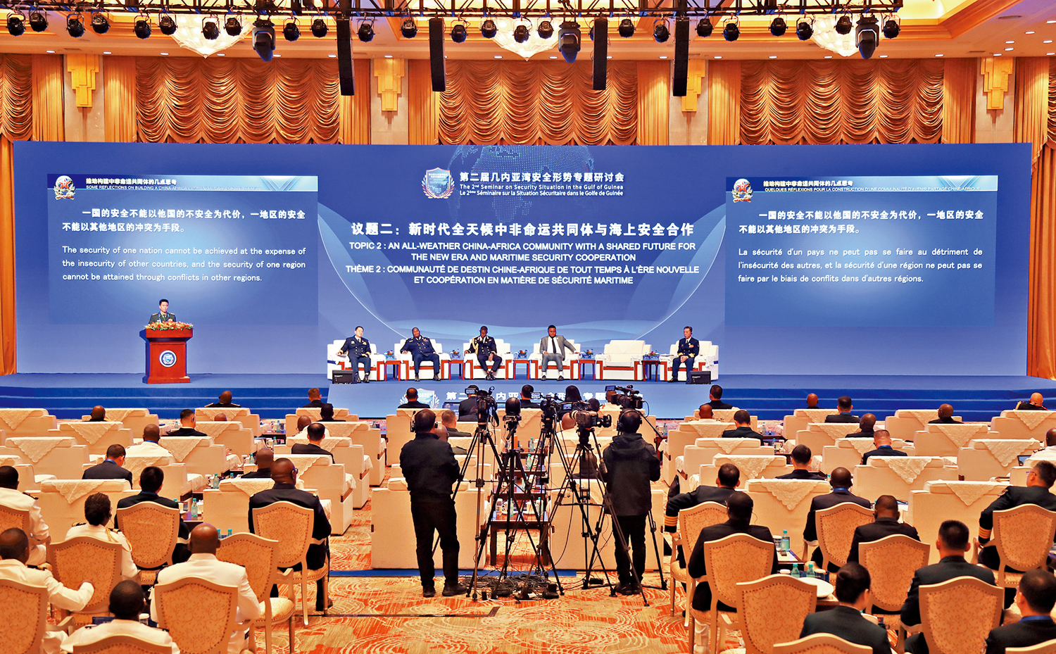 研討會期間,中國海軍司令員胡中明上將作主旨發言,貝寧、佛得角、喀麥隆、剛果(布)、剛果(金)、加蓬、岡比亞、幾內亞、尼日利亞等9個國家代表團團長圍繞「幾內亞灣海上安全形勢與合作」主題進行發言,部分外方代表和中方專家學者參與「海洋命運共同體視域下的海洋環境與地區安全」、「新時代全天候中非命運共同體與海上安全合作」2個分議題討論交流,就更好落實中非合作論壇北京峰會成果、推動實施「安全共築夥伴行動」發表觀點和見解。現場互動環節,與會人員針對大家關心的安全合作問題踴躍提問,深入探討共同應對海盜、走私、非法捕撈等海上威脅和挑戰的有效舉措,現場氣氛友好熱烈。