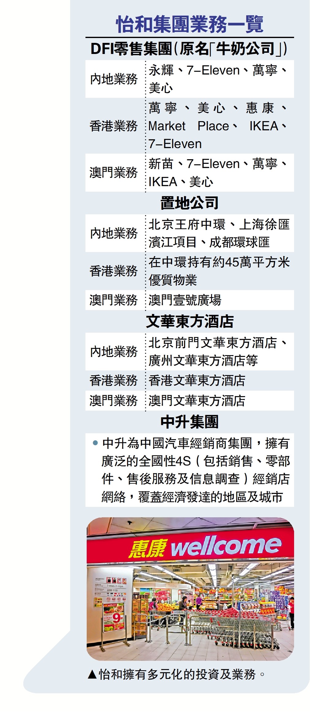 圖:怡和擁有多元化的投資及業務。