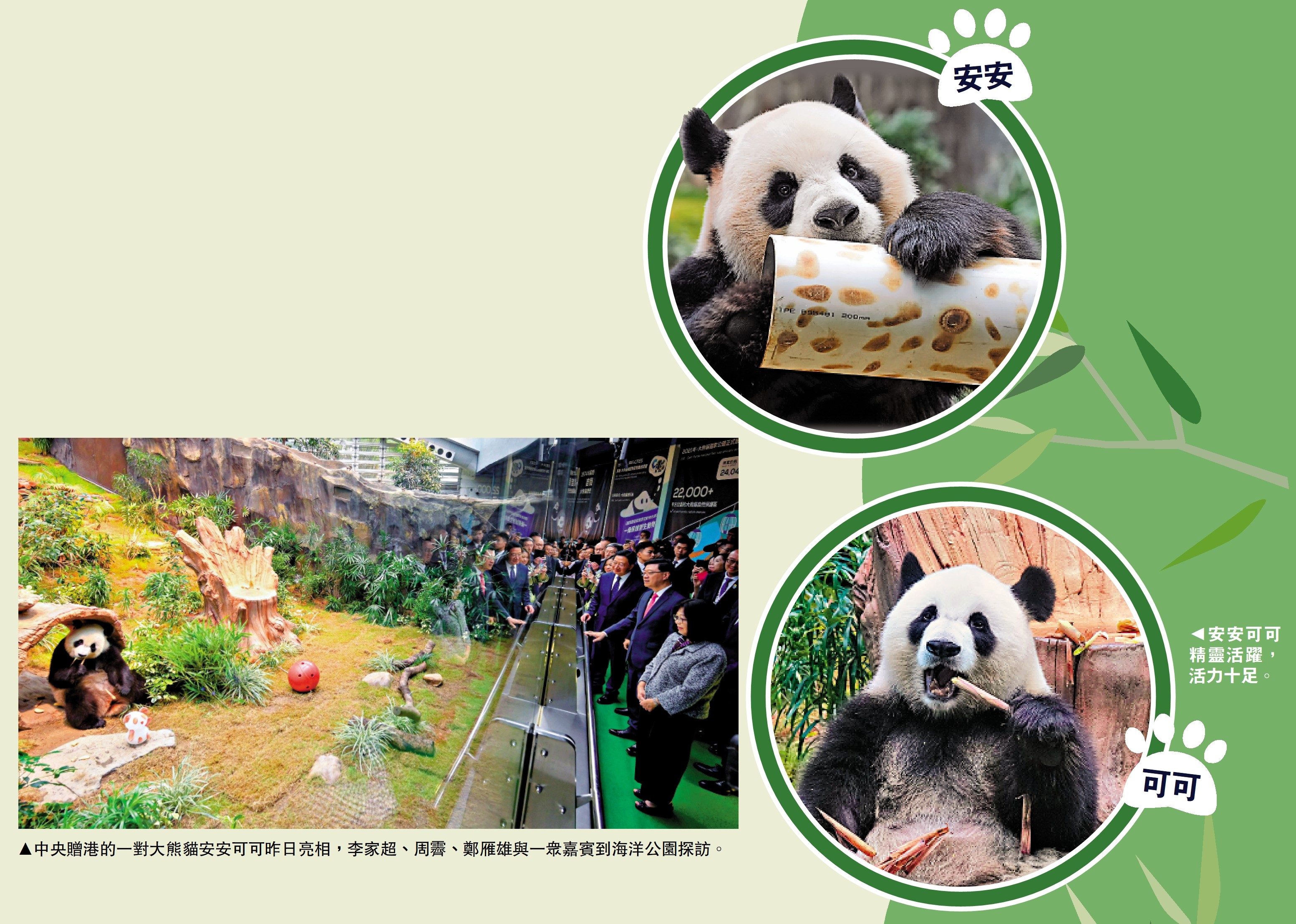 【大公報訊】記者劉碩源報道:中央贈港的兩隻大熊貓「安安」和「可可」,抵港至今三個月,千呼萬喚下,今日終於在海洋公園和廣大市民正式見面!特區政府早前舉辦的命名比賽結果昨日揭盅,宣布沿用兩隻大熊貓的原有名字,寓意「香港安居樂業,凡事有不同可能」。
