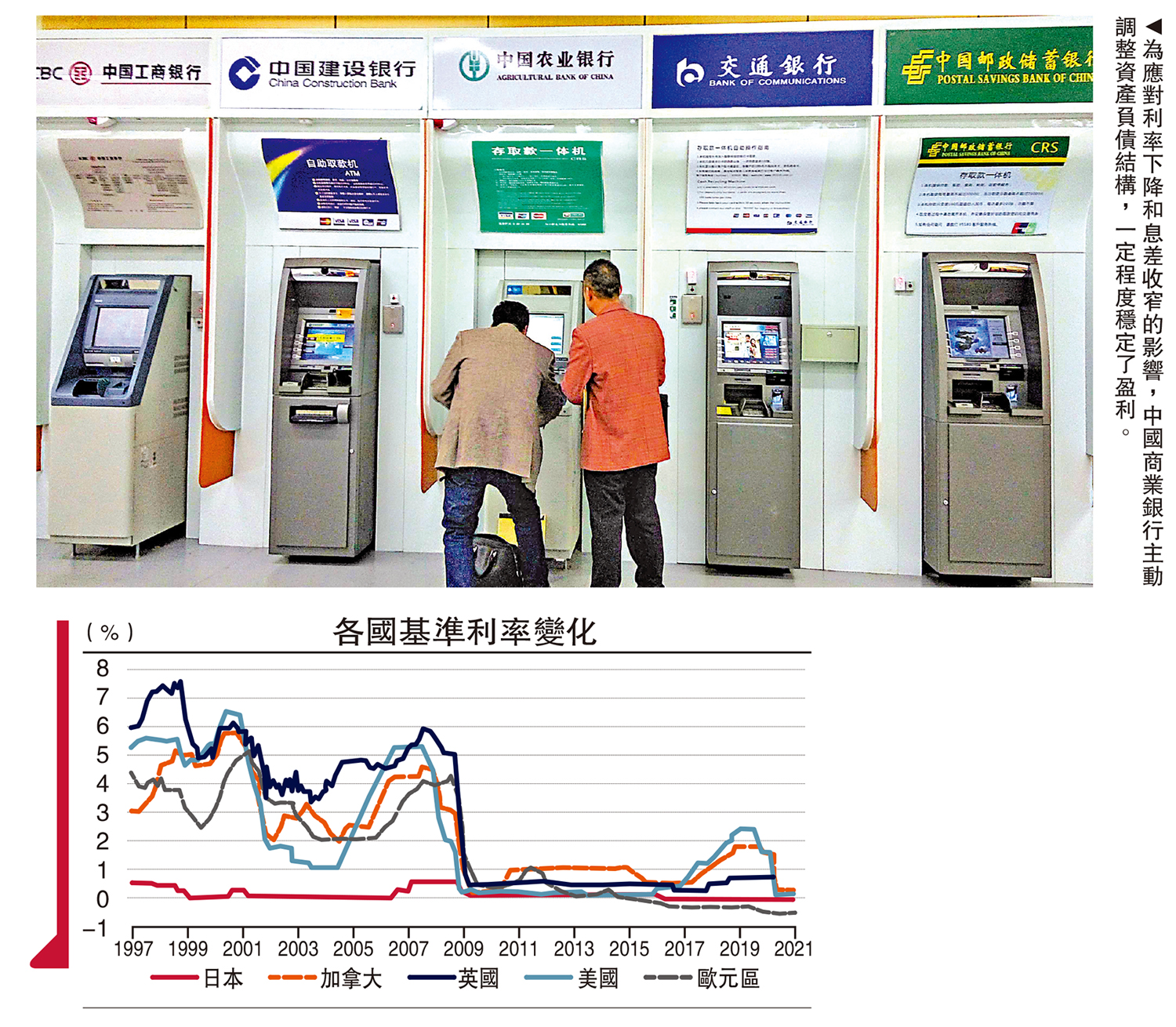 選定日本、美國、歐元區、加拿大和英國作為觀察樣本,將2002年定為日本的T0時期,將2009年定為其他經濟體的T0時期,觀察各國基準利率大幅下調前後五年銀行業經營狀況的變化。