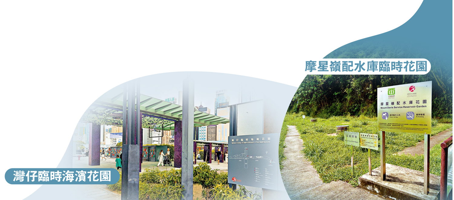 此外,位於西環的「加多近街花園」和「摩星嶺配水庫花園」原先都名為「加多近街臨時花園」和「摩星嶺配水庫臨時花園」。早年曾計劃清拆加多近街臨時花園,惟及後在有關組織聯署反對下,該花園才得以保留;2022年政府更刊憲將兩處用地名字抽起臨時兩字,令其成為永久花園。