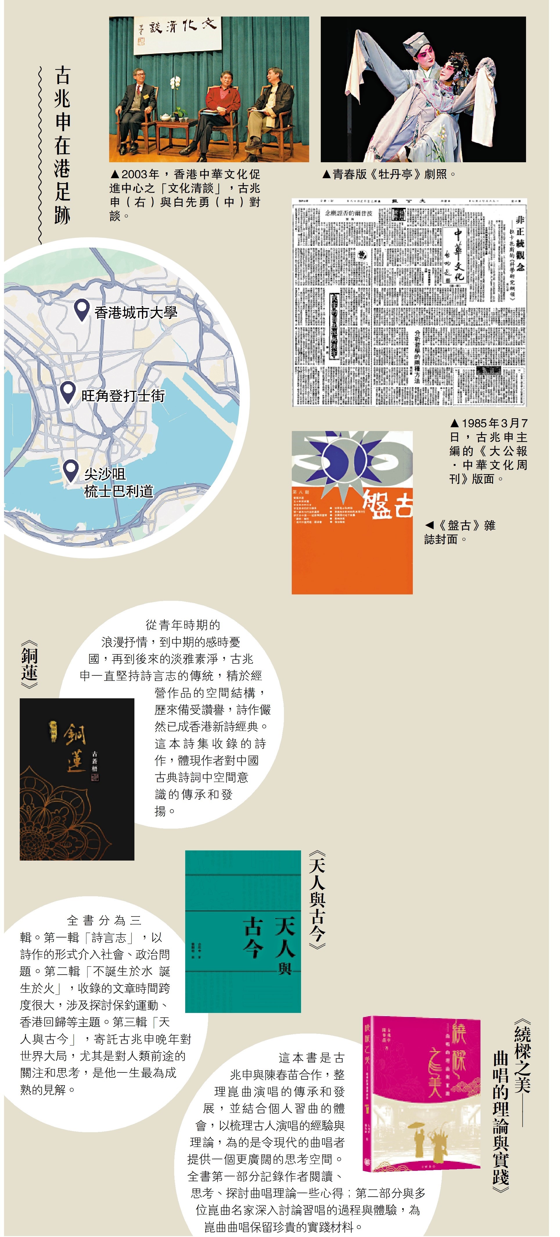 這本書是古兆申與陳春苗合作,整理崑曲演唱的傳承和發展,並結合個人習曲的體會,以梳理古人演唱的經驗與理論,為的是令現代的曲唱者提供一個更廣闊的思考空間。全書第一部分記錄作者閱讀、思考、探討曲唱理論一些心得;第二部分與多位崑曲名家深入討論習唱的過程與體驗,為崑曲曲唱保留珍貴的實踐材料。