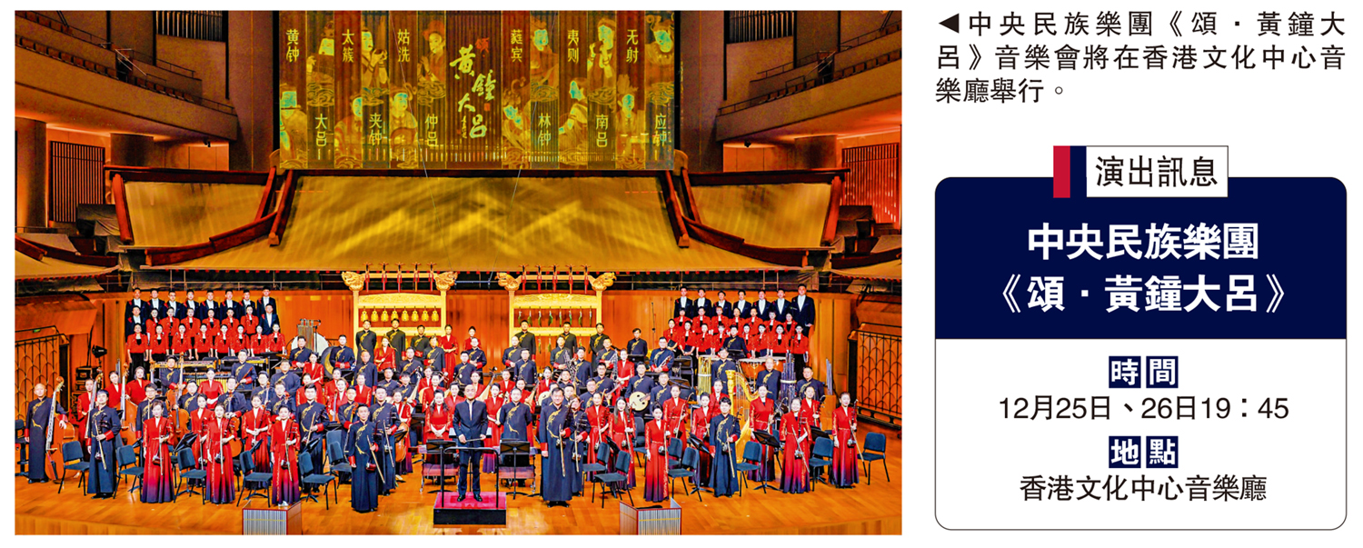 【大公報訊】「國風國韻飄香江」系列活動迎來2024年收官之作,中央民族樂團《頌·黃鐘大呂》音樂會將在12月25日至26日於香港文化中心音樂廳舉行。