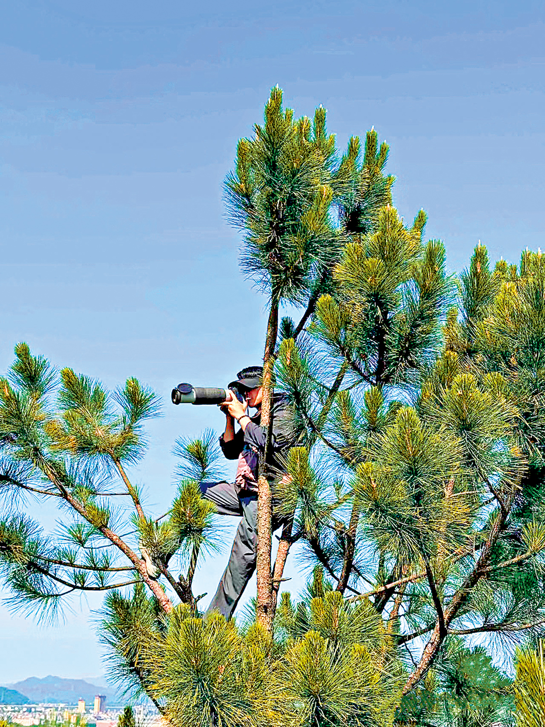 「幹代拍就兩條:一不怕苦,二不怕死。」小酒館裏,星仔娓娓道來這個圈子的甜酸苦辣。「我上山隨時帶着摺疊鋸用來劈路,長袖長褲和面罩都是標配。」話音未落,星仔兩條胳膊向前一伸,一條條扭曲的傷痕赫然在目。他告訴記者,半個月前,為了尋個刁鑽、獨家的機位賣個高價,他親眼見到身邊一位同行從幾米高的樹上掉了下去。「正聊着天呢,突然看他腳底一滑,緊接着聽到樹枝斷裂聲,後背重重砸在地上。兩邊樹枝全拗斷了,萬幸撿回一條命!」星仔灌了口酒,幽幽地說,「真是要錢不要命,第二天他又跟着我上樹了……」