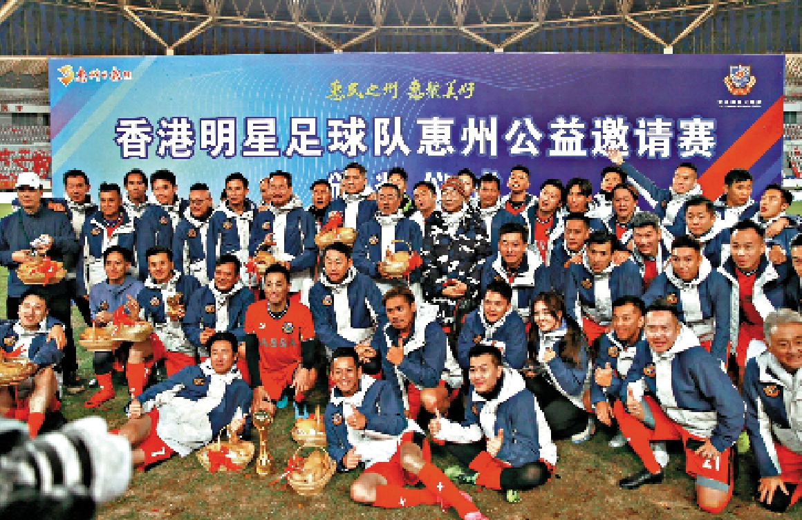 【大公報訊】記者李紫妍報道:「惠民之州 惠聚美好」香港明星足球隊惠州公益邀請賽,昨午在惠州奧林匹克體育場舉行,比賽分3節進行,香港明星足球隊輪番對戰「惠聚美好」足球隊的女子隊、草根隊、企業隊,最終以4:0取勝。本次公益賽事通過免費派發門票,和經典「勁歌金曲」互動表演等環節,吸引了兩萬多名市民和球迷到現場觀賽,賽場氣氛十分熱烈。