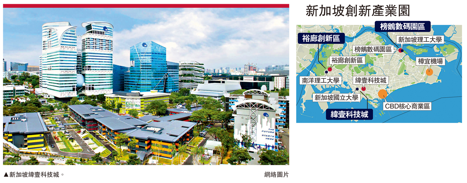 緯壹科技城已變身新加坡的「硅谷」,成功吸引到16個公共研究機構、5所高等院校、400家領先企業和環球機構以及700家初創公司入駐。