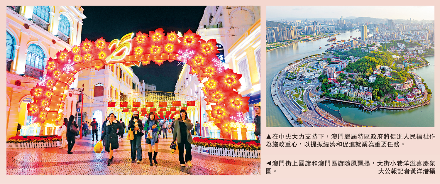 回歸祖國前,澳門經濟連續四年負增長,失業率超過6%。在中央大力支持下,歷屆特區政府都將促進人民福祉作為施政重心,以提振經濟和促進就業為重要任務。