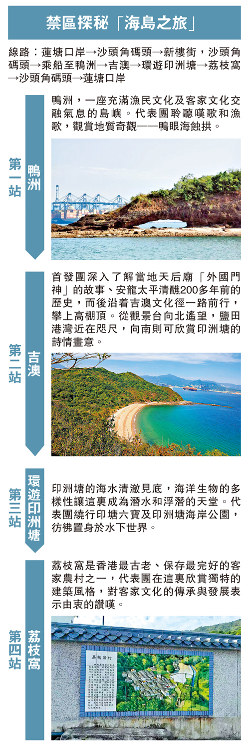 鴨洲,一座充滿漁民文化及客家文化交融氣息的島嶼。代表團聆聽嘆歌和漁歌,觀賞地質奇觀──鴨眼海蝕拱。