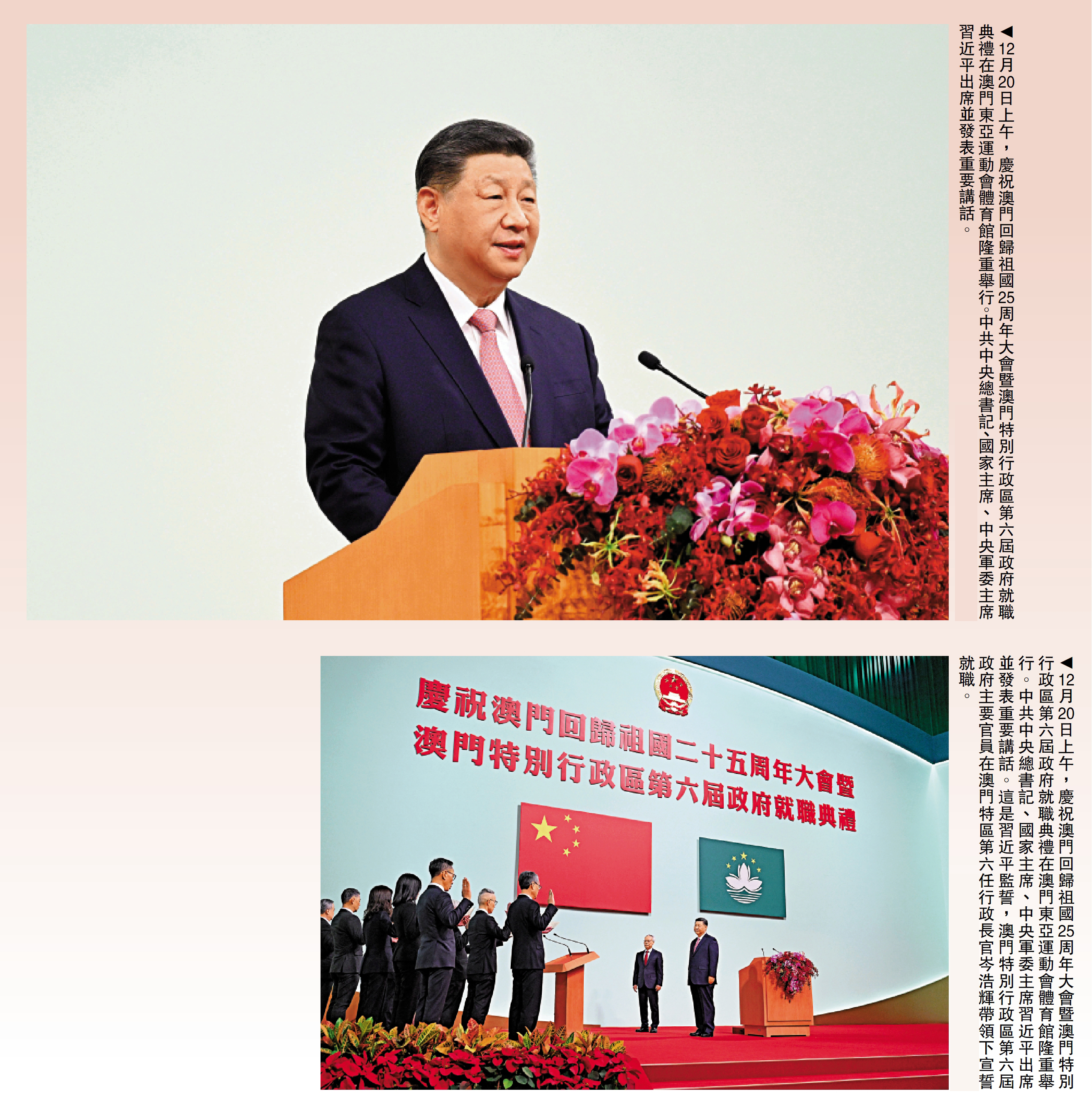 在慶祝澳門回歸祖國25周年大會暨澳門特別行政區第六屆政府就職典禮上,習近平主席深刻總結香港、澳門回歸以來的實踐經驗,指出繼續推進「一國兩制」實踐行穩致遠需要把握好以下4條:一要堅守「一國」之本、善用「兩制」之利,二要維護高水平安全、推動高質量發展,三要發揮獨特優勢、強化內聯外通,四要弘揚核心價值、促進包容和諧。