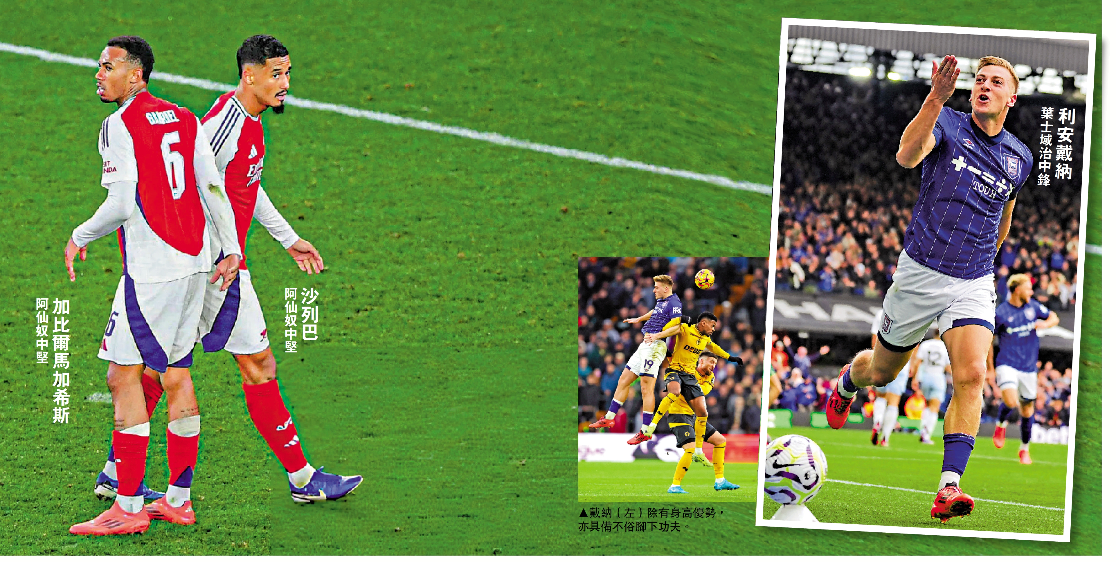 阿仙奴一對中堅、加比爾馬加希斯和威廉沙列巴皆身高至少1米90,「後防雙塔」近季藉死球攻勢助球隊取得不少斬獲,周六凌晨「英超快車」中兩人除了充當「得分後衛」,更重要任務是緊密看管葉士域治的「巨人中鋒」利安戴納。事實上,戴納有制空優勢外,其左右開弓的射術亦令對方後衛防不勝防,今場「巨人大決戰」,既要「空中爭勝」,亦要「地面交鋒」。\大公報記者 譚德龍