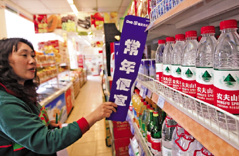 面對農夫山泉的猛烈攻勢,怡寶、娃哈哈等品牌迅速跟進,將瓶裝水的價格直接打回了1元(人民幣,下同)時代。在部分城市的商超中,原價15元一提(12瓶)的怡寶和娃哈哈分別將價格降至10元、10.2元。「降價後,顧客購買整提瓶裝水的需求明顯增多。」杭州聯華超市的促銷人員告訴記者:「受此影響,超市購物車的使用頻率都增加了,而此前顧客更多的是單瓶單瓶買。」