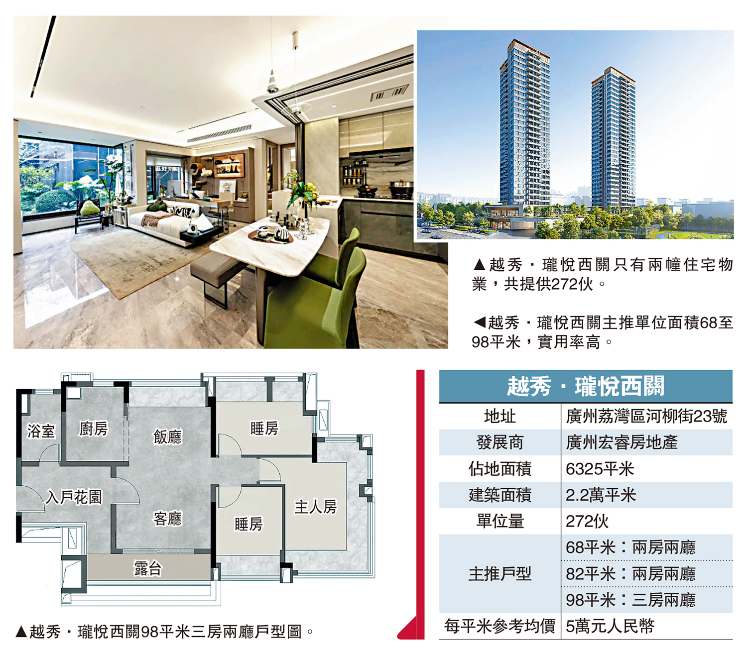 越秀·瓏悅西關位於荔灣西關板塊,在地鐵5號線西場站和中山八站之間。項目所在的河柳街,有着極深的歷史底蘊。據說荔灣二字,來源就是荔枝灣。而荔枝灣的舊址,就位於荔灣路駟馬涌附近,緊鄰河柳街。河柳街的樓盤不但坐擁一線河涌景觀優勢,還羈絆着廣州的母親河──珠江。該盤樓宇均為全南向布局,提供272伙,西面距珠江約730米,西北面約930米為珠江與石井河交匯處,部分戶型可享珠江景觀。