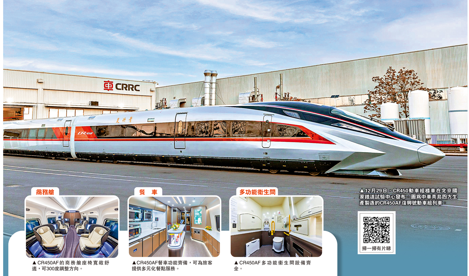 國鐵集團透露,接下來將安排CR450動車組樣車開展一系列線路試驗和考核,進一步檢驗各項性能,不斷優化技術指標,爭取早日投入商業運營,讓旅客出行更便捷高效。\大公報記者 郭瀚林北京報道