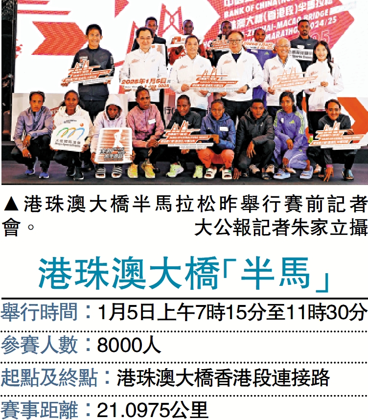 【大公報訊】記者朱家立報道:中國銀行(香港)港珠澳大橋(香港段)半馬拉松將於明天舉行,賽事吸引了8000位跑手出戰。與上屆相比,本屆賽事進一步優化跑手起步點安排,給予參賽者更好的體驗。