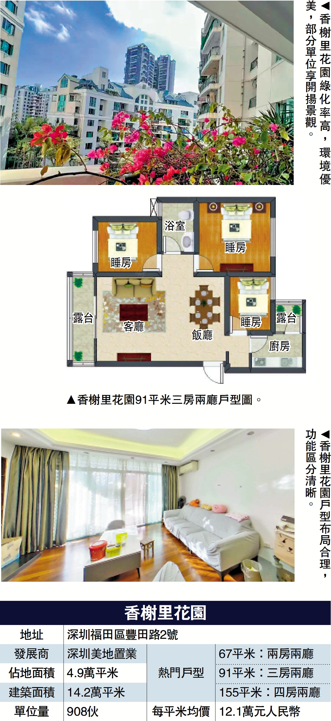 香榭里花園每平米參考均價約12.1萬元(人民幣,下同),售價方面,三房戶型售約1300萬至1550萬元,四房戶型可能高達數千萬元。租金方面,面積91平米三房戶月租約8500至9000元,面積更大的四房戶月租可能超過1.6萬元(約1.7萬港元)。