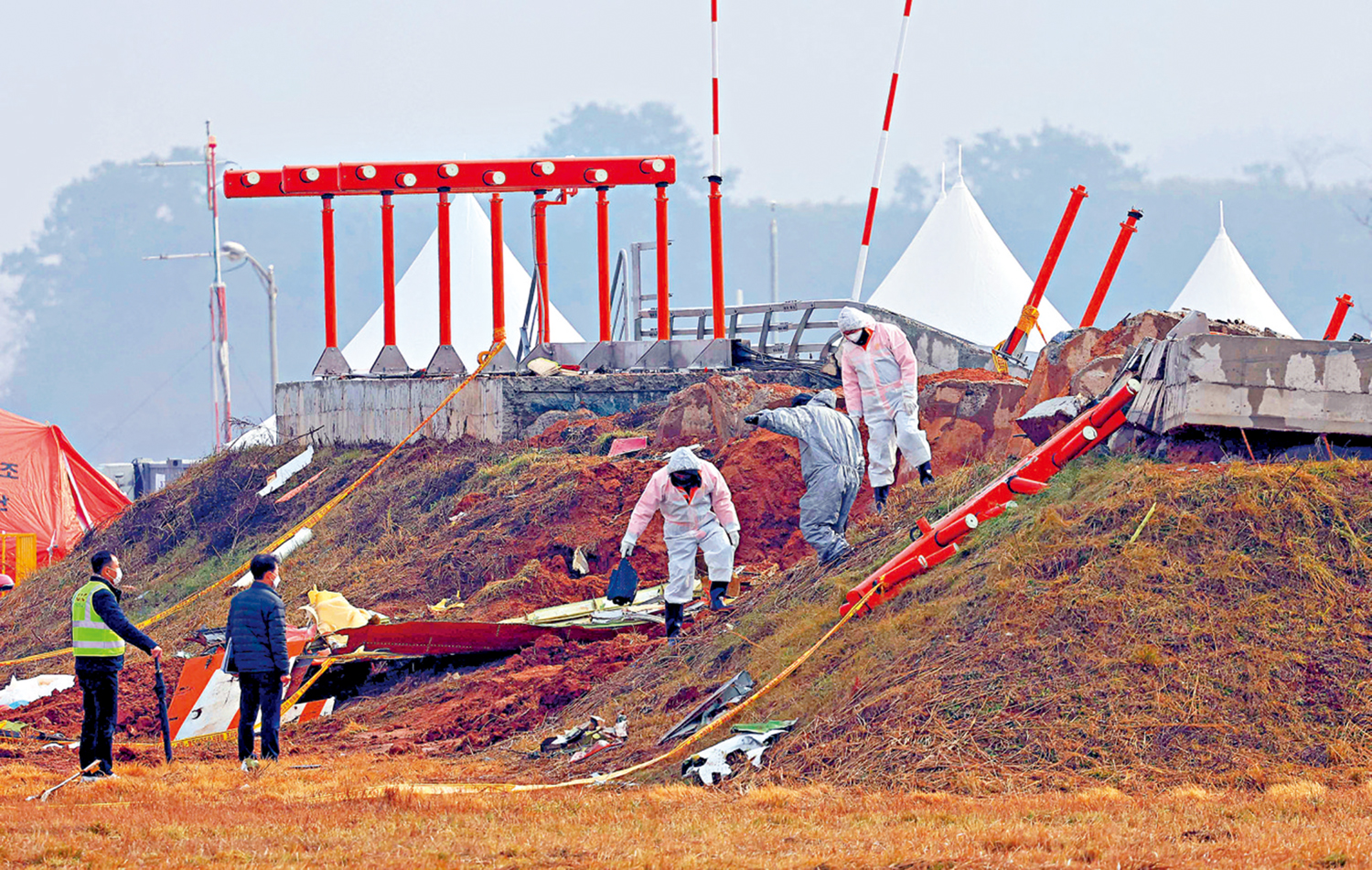 【大公報訊】綜合韓聯社、BBC報道:濟州航空飛機失事造成重大傷亡,航空專家對務安機場跑道盡頭一道「不尋常」的混凝土牆提出質疑。英國航空安全專家大衛·利爾蒙特認為,「這次事故中大量人員喪生的原因並非降落本身,而是飛機撞上了跑道盡頭的一個非常堅固的障礙物。」