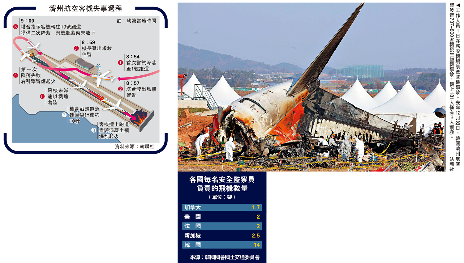 韓國濟州航空空難發生逾一周,務安機場清理善後部門5日消息,失事客機殘骸和遇難者遺體、遺物的搜尋清理工作結束。相關部門從事發後對機體、跑道等事故現場和周圍進行了為期一周的大規模搜尋工作。179名遇難者遺體均尋回,部分遺物也歸還遺屬。然而,圍繞客機失事原因的多個謎團仍待解開。