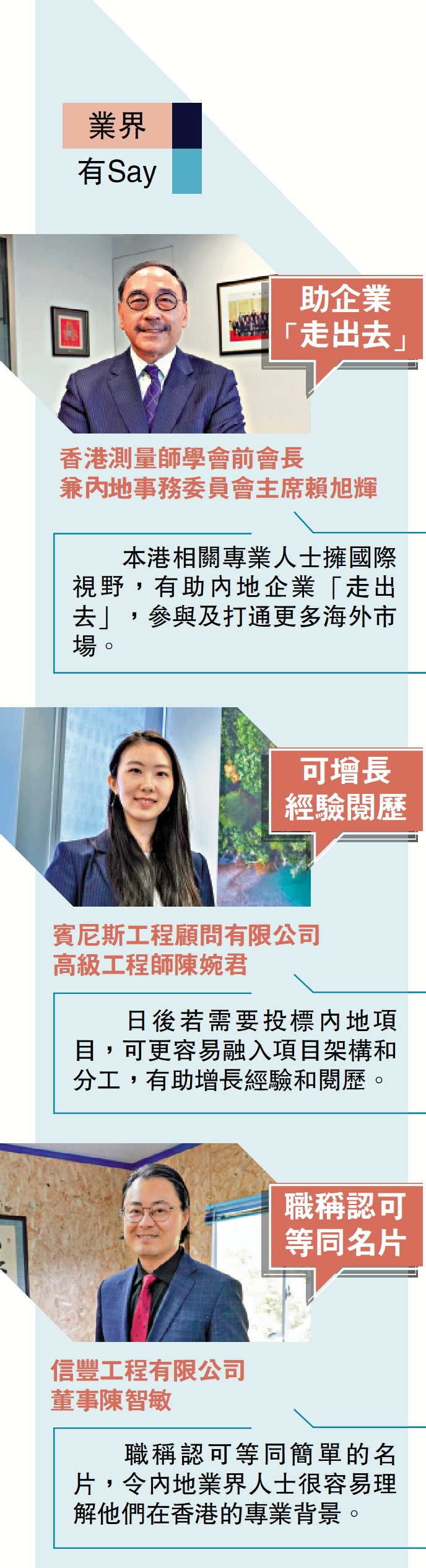 日後若需要投標內地項目,可更容易融入項目架構和分工,有助增長經驗和閱歷。