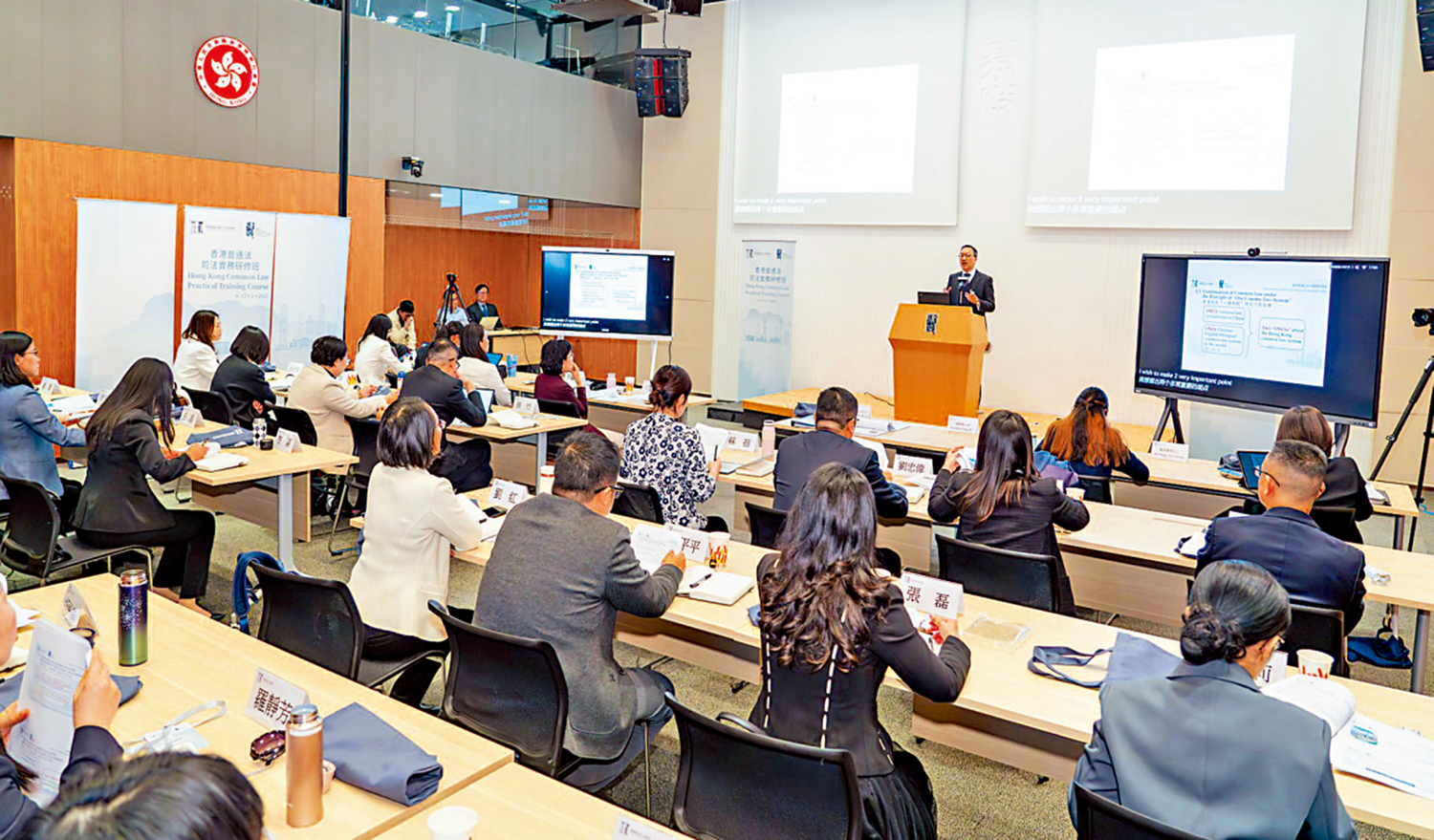 律政司司長林定國在研修班開班儀式致辭,並主講首場講座時表示,非常感謝最高人民法院對培訓學院的支持和信任。他指出,香港是「一國兩制」下全國唯一的普通法司法管轄區,擁有健全的雙語普通法制度,期望課程可促進香港普通法制度與內地法律制度的交流,並加深參加者對香港普通法制度的了解,以在未來實踐所學。