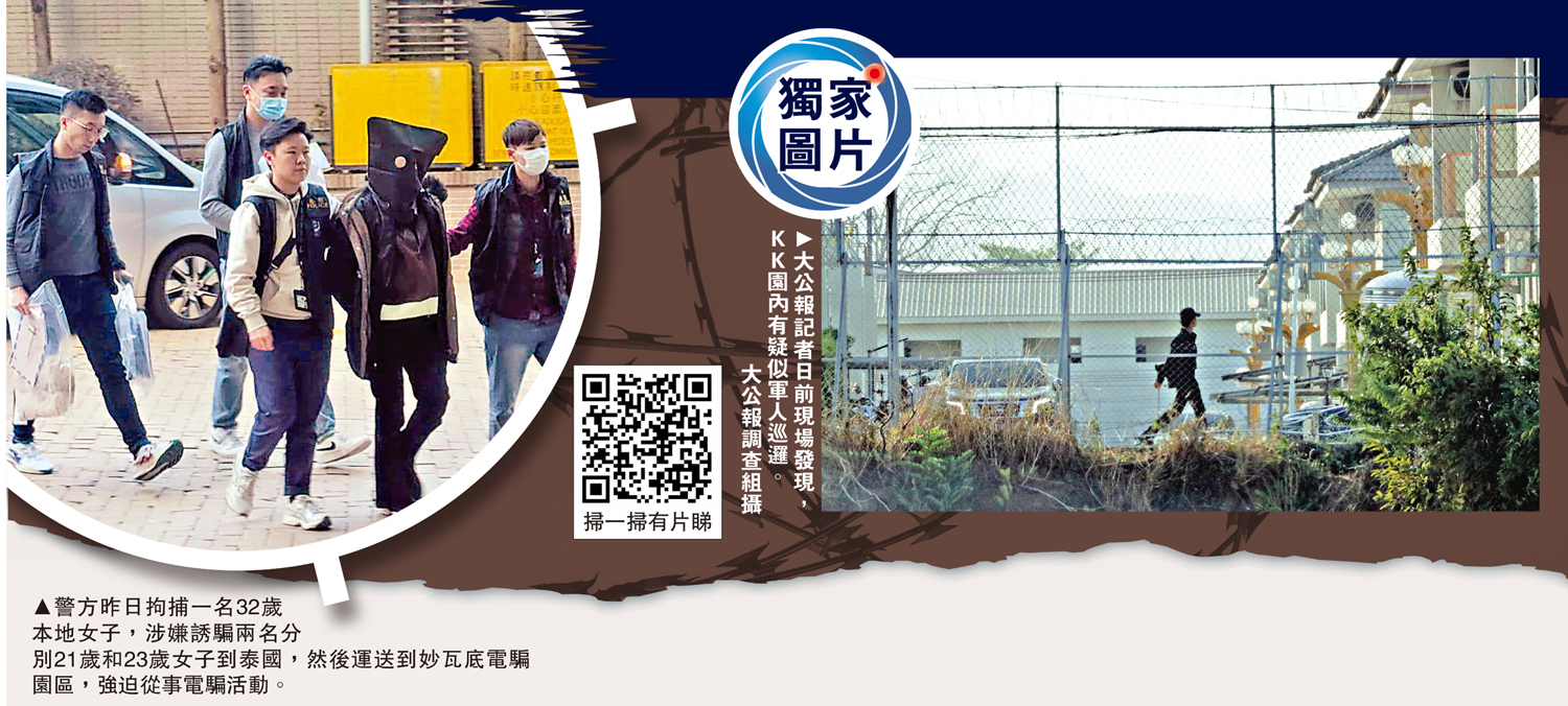 緬甸的電騙園恐怖組織瘋狂拐騙來自各地的「豬仔」從事非法勾當,現時仍有11名港人被禁錮在緬東妙瓦底電騙園。警方昨日公布拘捕一名32歲女子,她涉嫌在早前誘拐兩名21及23歲的本地女子到緬甸電騙園區。