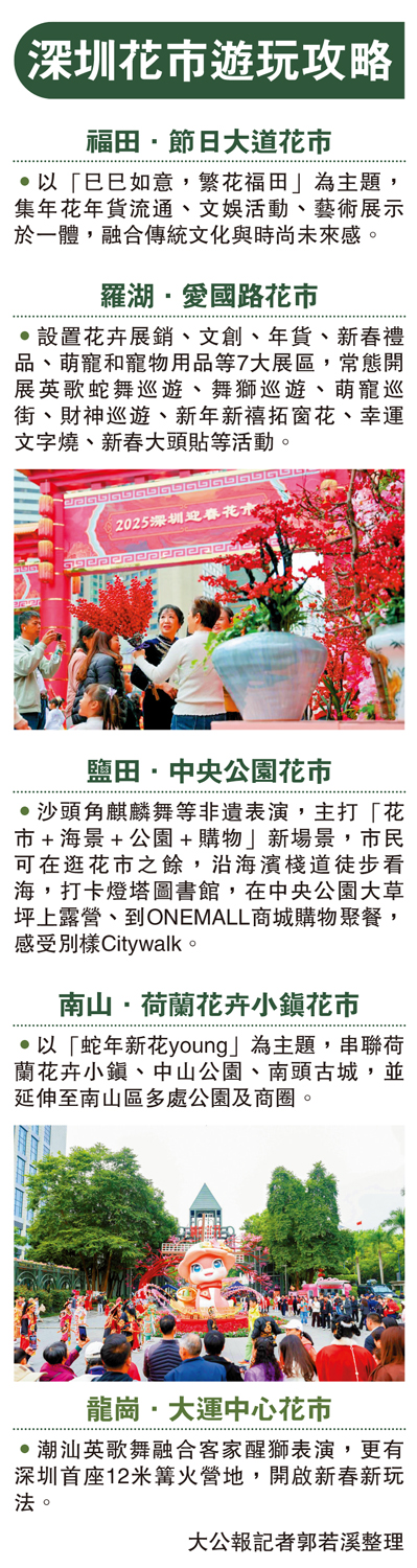 •以「蛇年新花young」為主題,串聯荷蘭花卉小鎮、中山公園、南頭古城,並延伸至南山區多處公園及商圈。