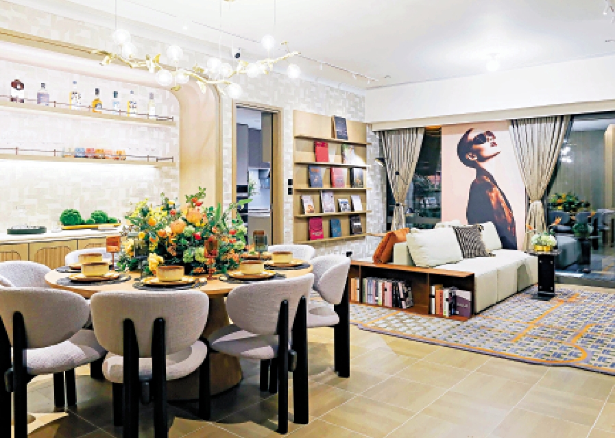 皇都示範單位昨日首度向傳媒開放。集團策略設計部總監鄭靜如指,示範單位以33樓B2室為藍本,實用面積1246方呎,四房一套及儲物室連洗手間間隔,層與層之間高度最高逾3米。