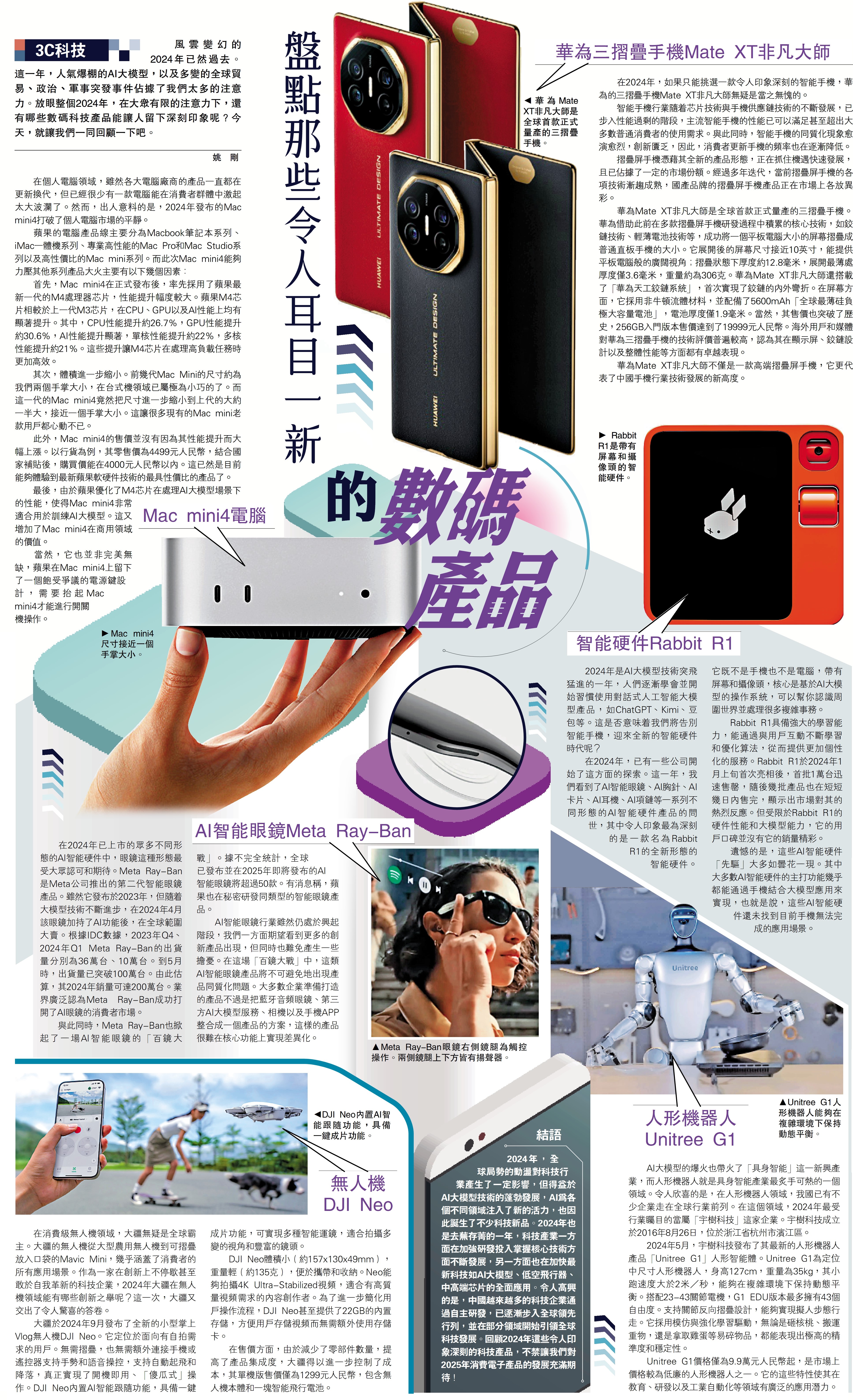 風雲變幻的2024年已然過去。這一年,人氣爆棚的AI大模型,以及多變的全球貿易、政治、軍事突發事件佔據了我們太多的注意力。放眼整個2024年,在大眾有限的注意力下,還有哪些數碼科技產品能讓人留下深刻印象呢?今天,就讓我們一同回顧一下吧。\姚 剛