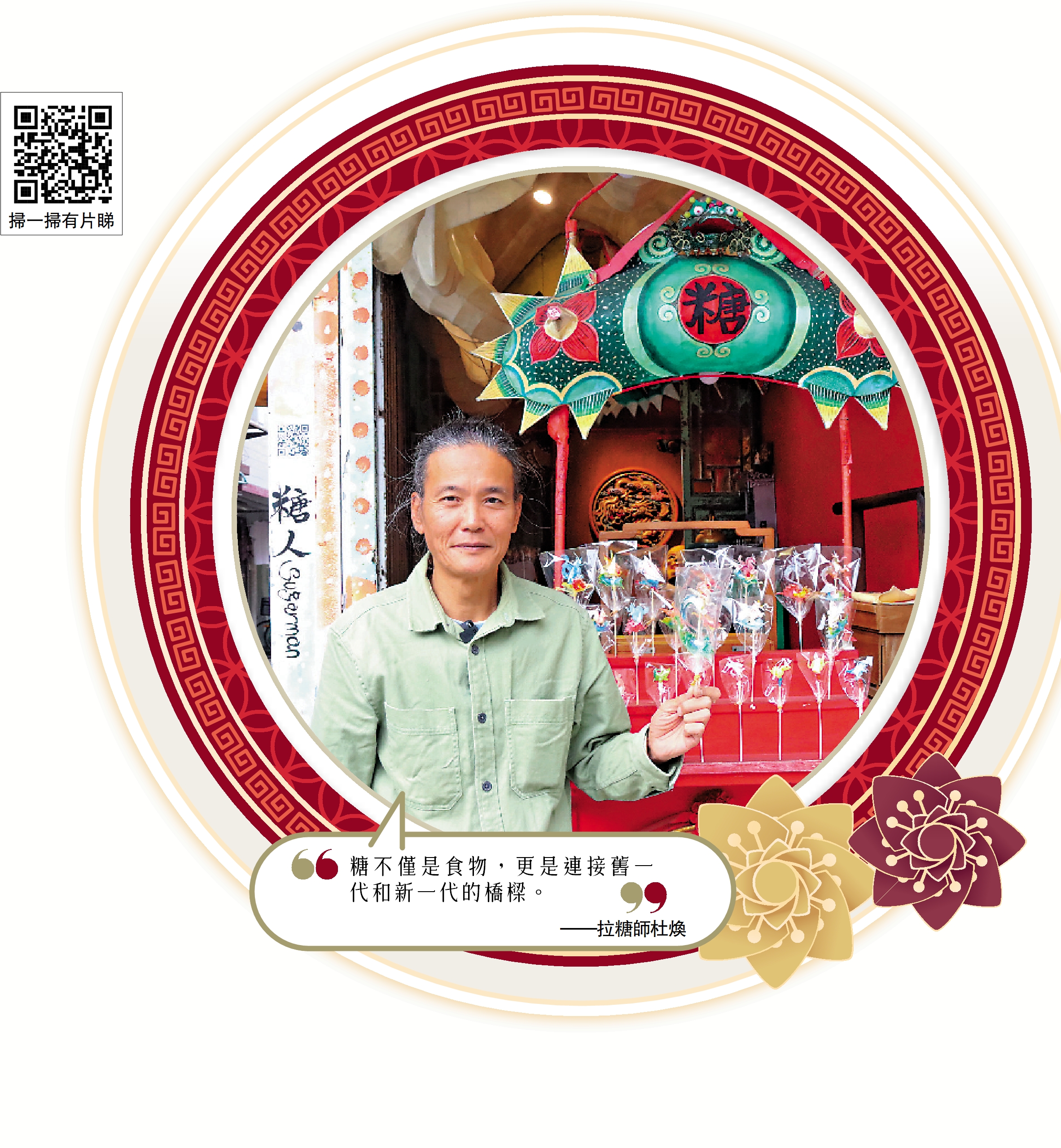 「如果不是這位街坊,我或不會挖掘到這種糖。」杜煥感慨地說。而杜煥也發覺,自己最初做糖時並沒有深入思考其意義,但在漫長的歲月裏,他逐漸意識到「糖」不僅僅是一個食物,更是連接時空、人與人關係以及文化的載體,是一個連接舊一代和新一代的橋樑。