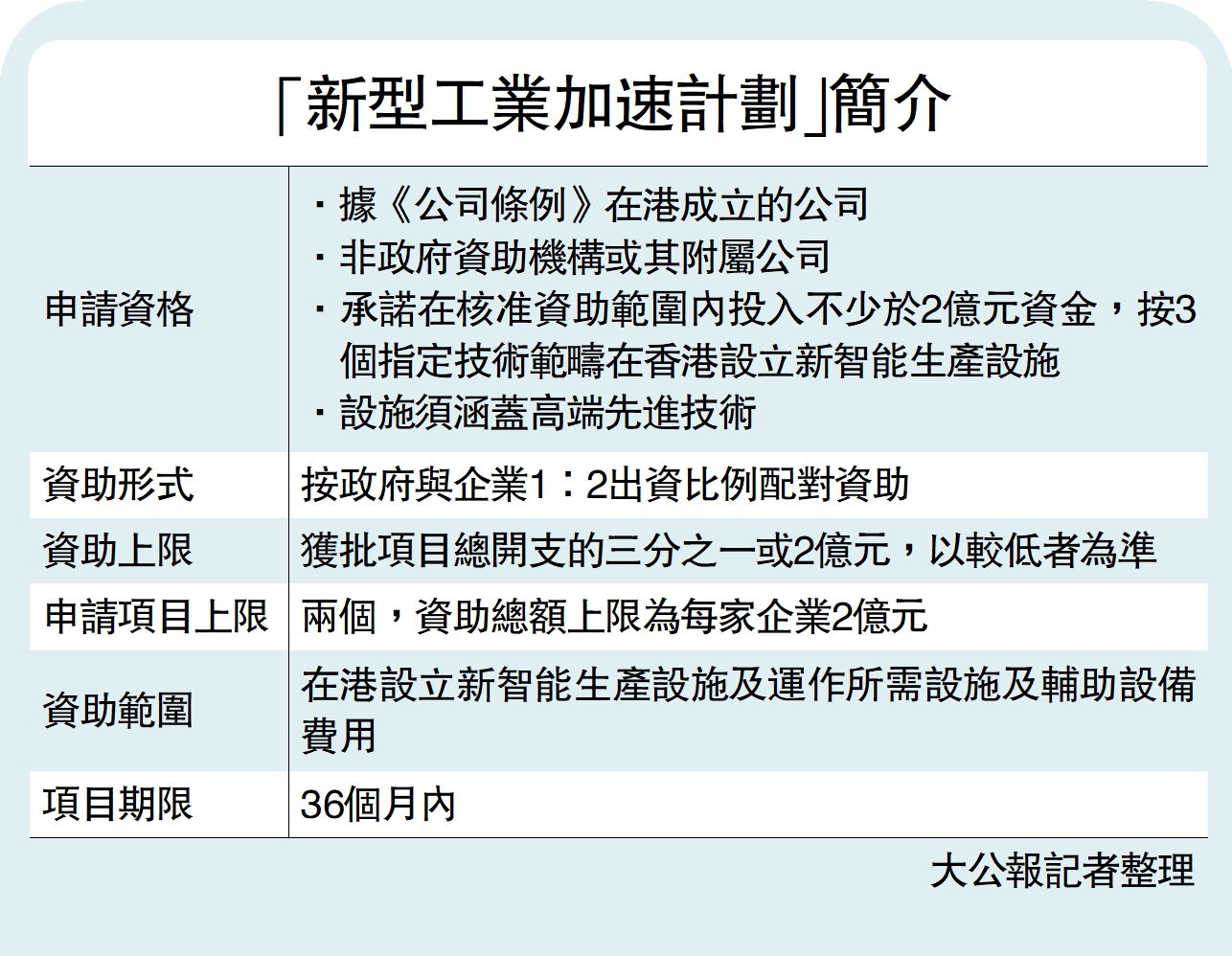 【大公報訊】為鼓勵企業利用創新科技實現智能化製造,特區政府去年推出100億元的「新型工業加速計劃」(「加速計劃」),昨日宣布首宗項目獲批。創新科技署宣布,「創新及科技基金」下「新型工業評審委員會」支持一宗由雅各臣集團旗下正美藥品有限公司提交的「加速計劃」申請,涵蓋生命健康科技的領域。