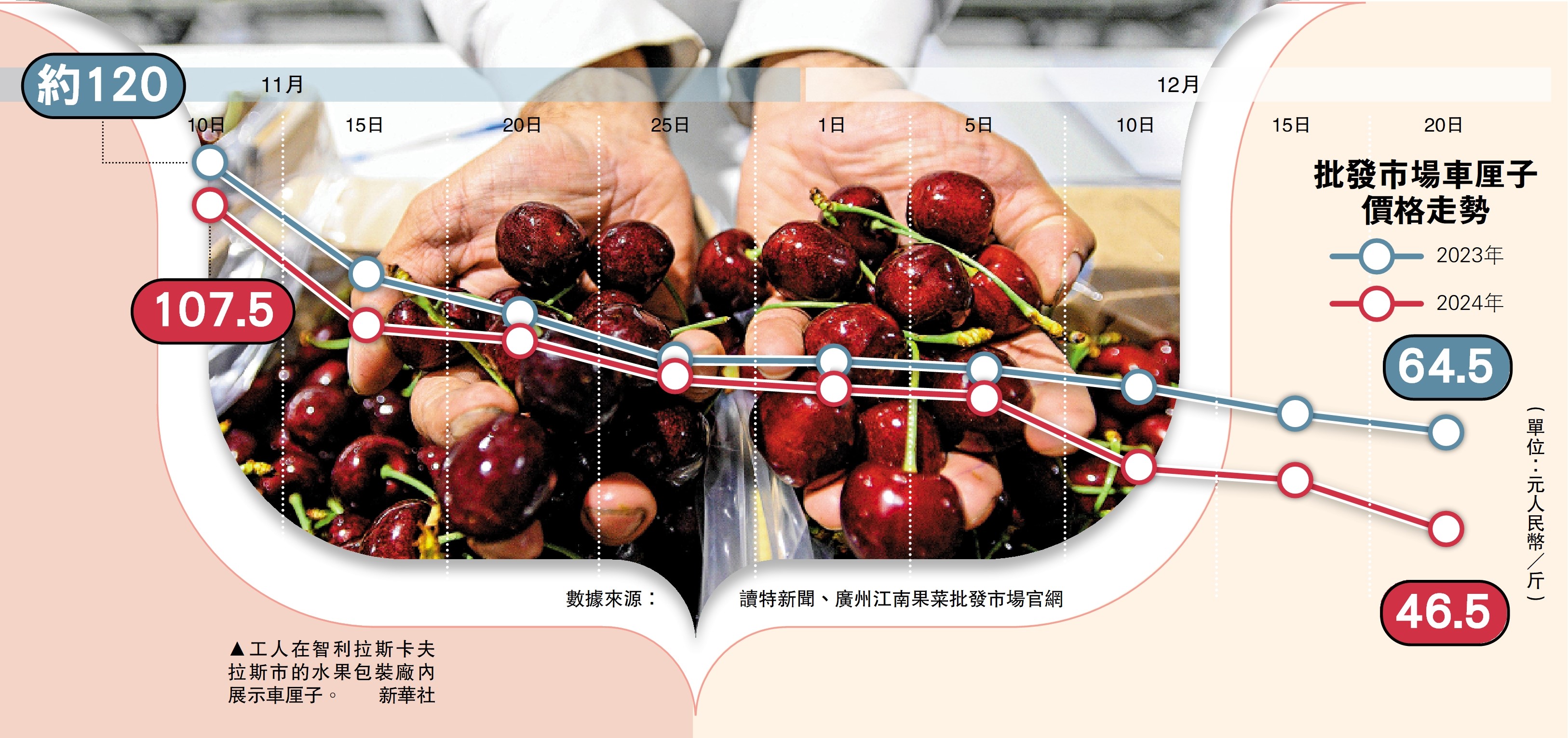 近來車厘子的降價除了是受季節與產量因素影響,還得益於中國外貿國門越開越大,使得世界各地的優質物產逐漸融入百姓日常。據了解,目前由南美直航上海的「櫻桃快線」運輸時長僅23天,而隨着亞拉陸海新通道錢凱港開港,有望進一步縮短物流時間,降低成本。\大公報記者 李薇