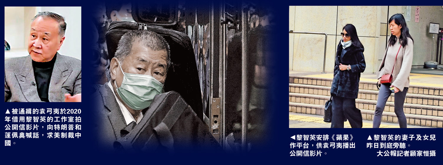 壹傳媒創辦人黎智英與《蘋果日報》三間相關公司涉嫌串謀勾結外國勢力案,昨日踏入第132日審訊。控方展示黎與現被通緝的袁弓夷於2020年5月的訊息,顯示黎同意袁透過《蘋果》作為平台播放向時任美國總統特朗普和國務卿蓬佩奧喊話的影片,包括敦促美國在香港駐紮聯合國維和部隊、制裁中國和香港特區。
