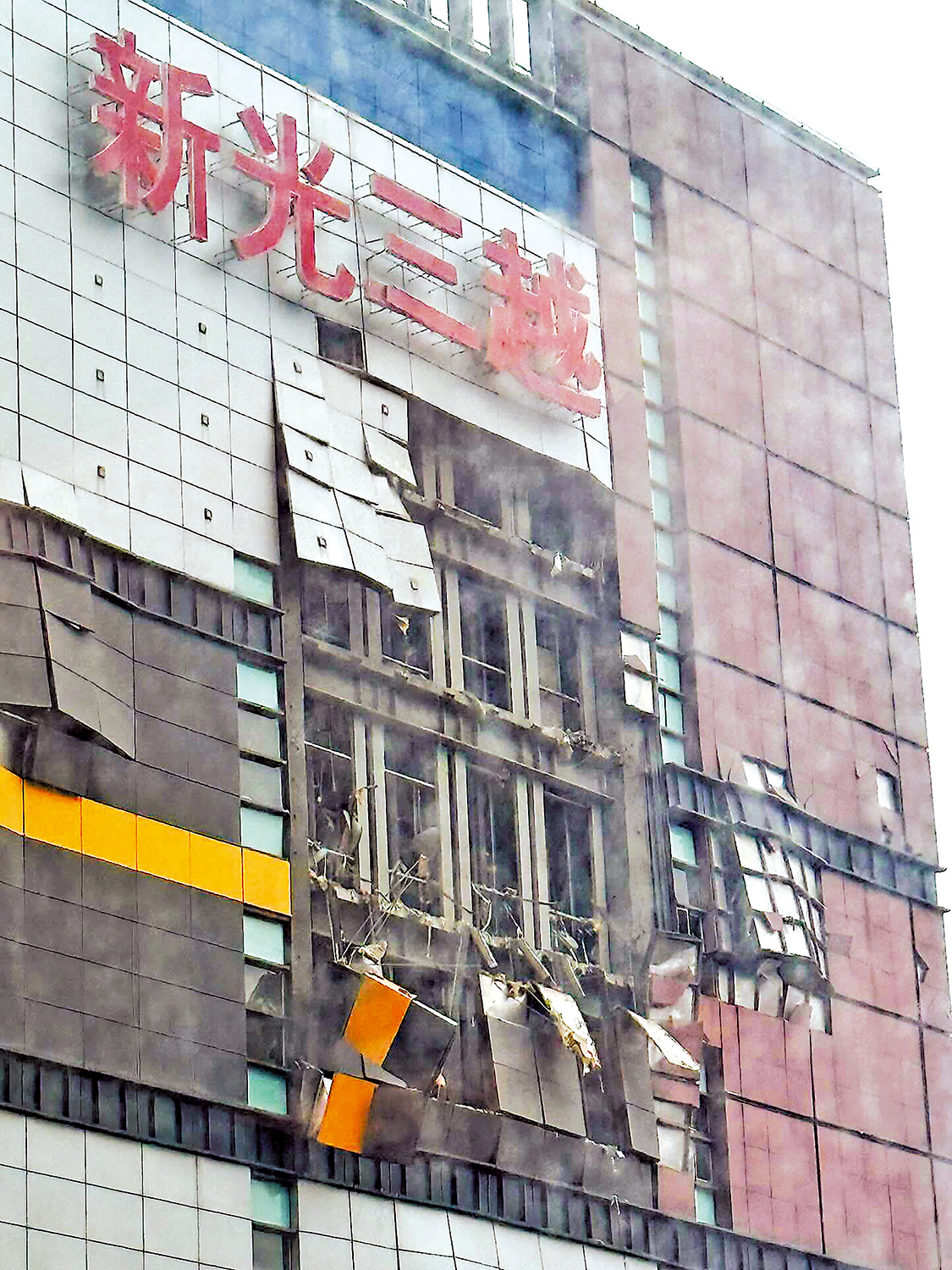 台中市新光三越百貨商場發生爆炸事故,造成4人死亡、30人受傷。