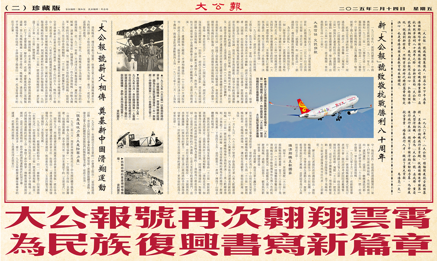 新「大公報」號致敬抗戰勝利八十周年
