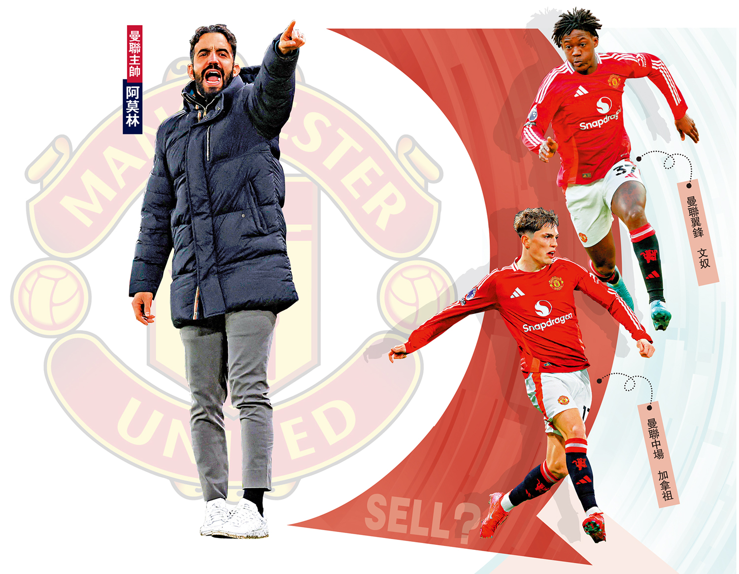 「紅魔鬼」曼聯今季中途換上新帥阿莫林後,表現仍令人相當失望。為在新球季取得佳績,阿莫林準備重建陣容提升戰力,不幸的是,他只能在先出售麾下球員後,才可以購買新兵。因此,阿莫林只能盡量賣出所有球員,才能籌集資金收購適合自己戰術需要的新球員。要取得成功,自然要去得更盡,據報阿莫林只打算留下兩名葡萄牙同胞般奴費南迪斯及達洛治,相信即使是加拿祖及文奴等新星主力,亦很可能難逃被出售命運。\大公報記者 梁潤森