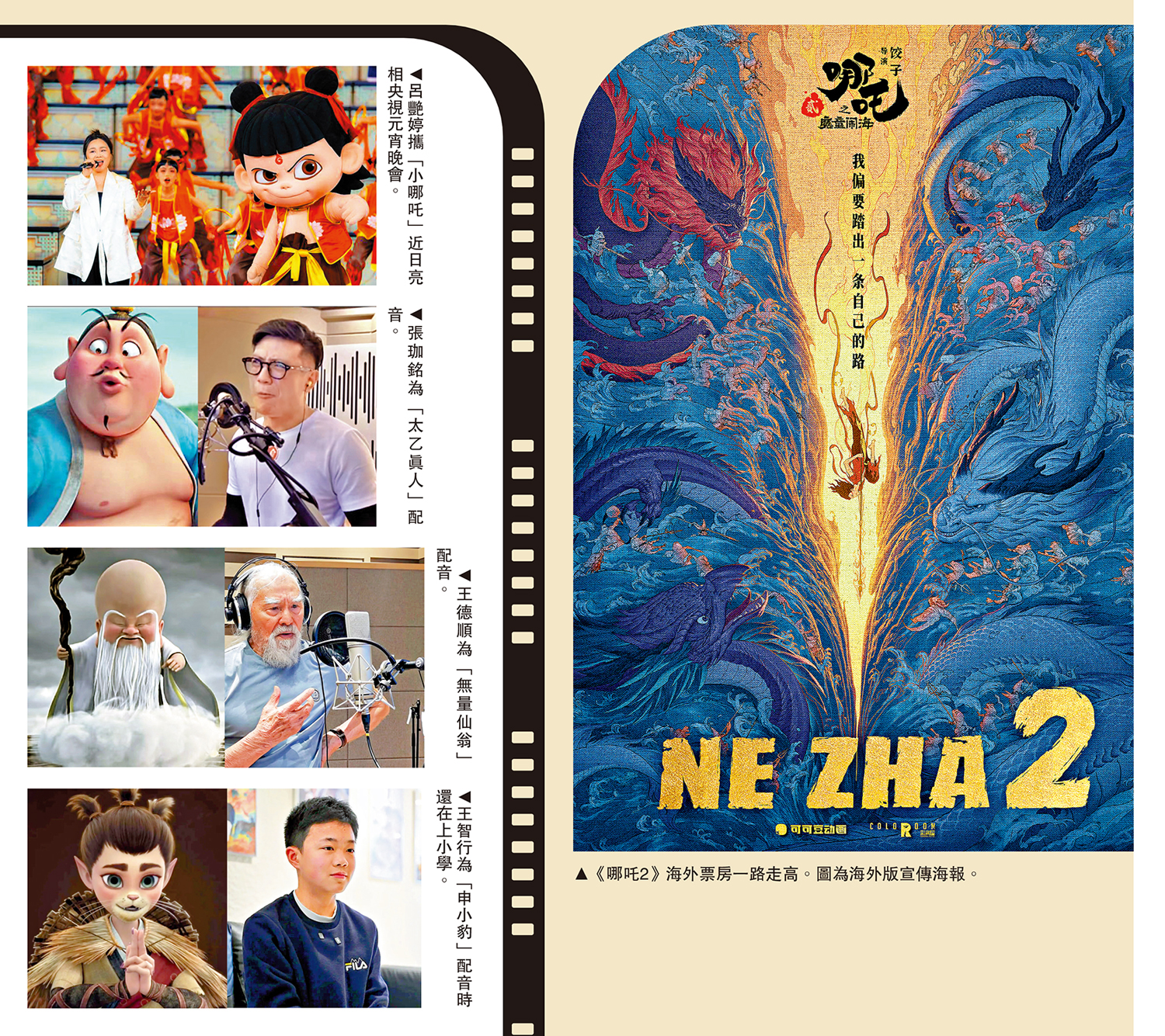 電影《哪吒之魔童鬧海》(下稱《哪吒2》)在剛剛過去的周末兩天又砍下14億元(人民幣,下同)票房,勢頭兇猛,預計今日就會突破120億進入全球影史票房榜前十。除了視覺效果驚艷,《哪吒2》的配音也給觀眾留下了深刻的印象,從頑劣的哪吒,到一口四川普通話的太乙真人,到複雜多變的無量仙翁,再到軟萌可愛的申小豹,這些令觀眾大呼「貼臉」的聲音背後個個有故事,體現出主創團隊精益求精的信念和對電影細節孜孜不倦的追求。\大公報記者 徐小惠